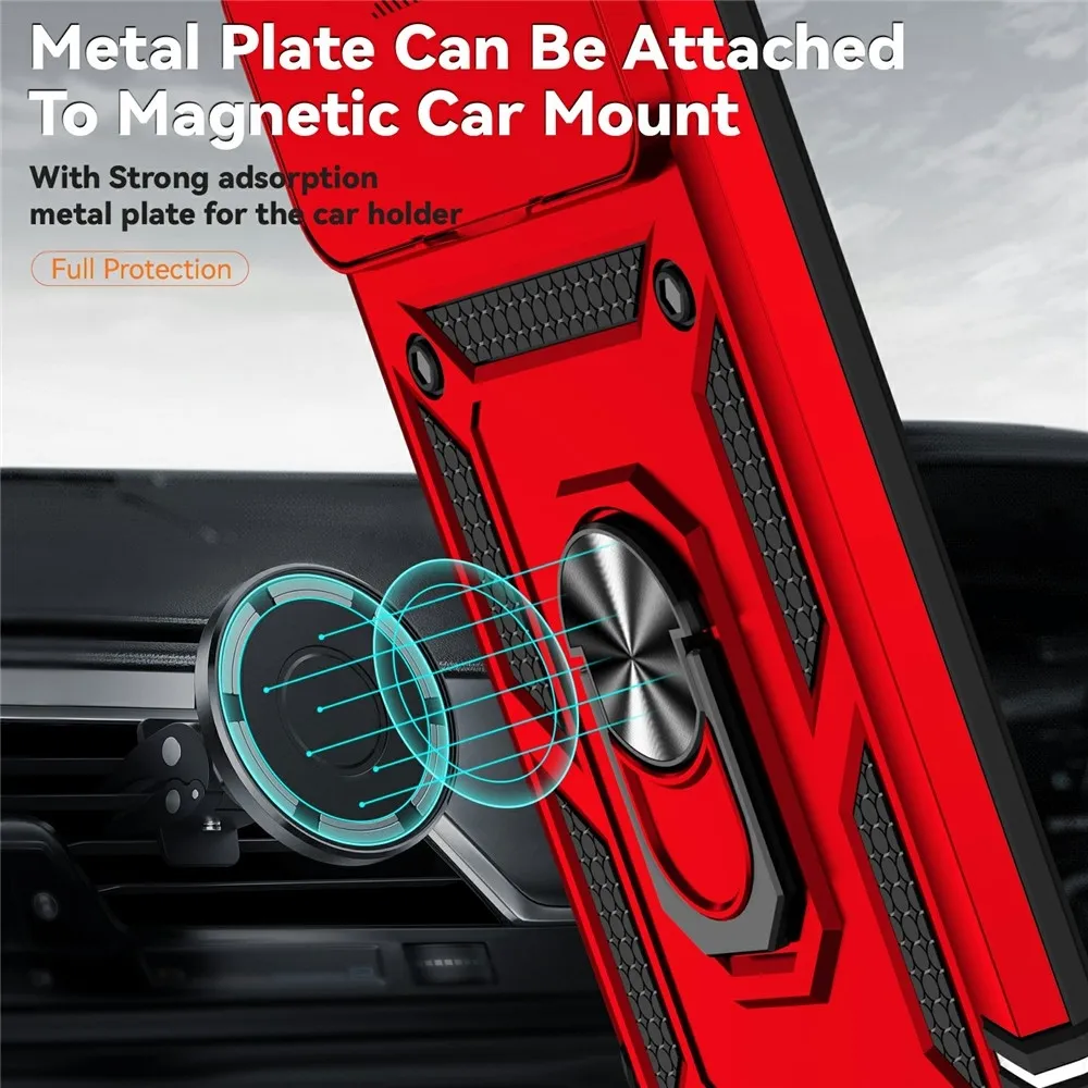 Ring odolný hybridný kryt prináša bezpečie vášmu telefónu po celom obvode a zozadu, pohyblivý kryt šošovky a mierne zvýšené okraje zaisťujú dokonalú ochranu citlivých častí. Kovová časť umožňuje použitie magnetických držiakov do auta.