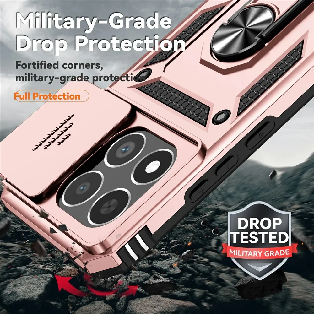 Ružovovozlatý hybridný odolný obal Ring s úchytom na prst na mobil Xiaomi 15T