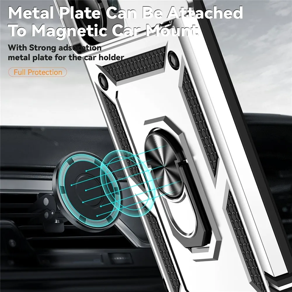 Ring odolný hybridný kryt prináša bezpečie vášmu telefónu po celom obvode a zozadu, pohyblivý kryt šošovky a mierne zvýšené okraje zaisťujú dokonalú ochranu citlivých častí. Kovová časť umožňuje použitie magnetických držiakov do auta.