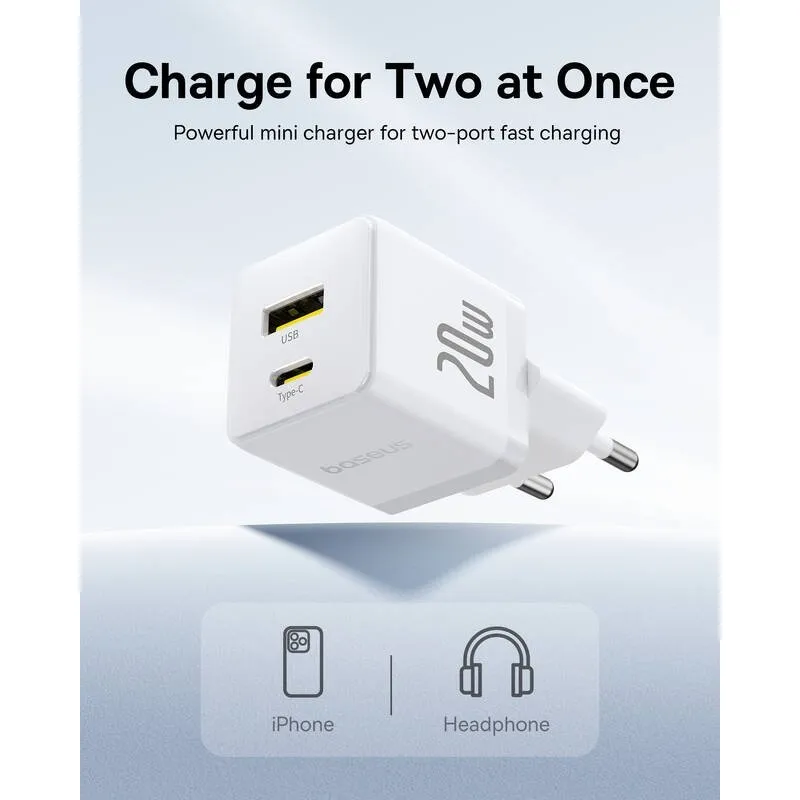 Baseus Palm Fast Nabíjačka USB-A + USB-C 20W White