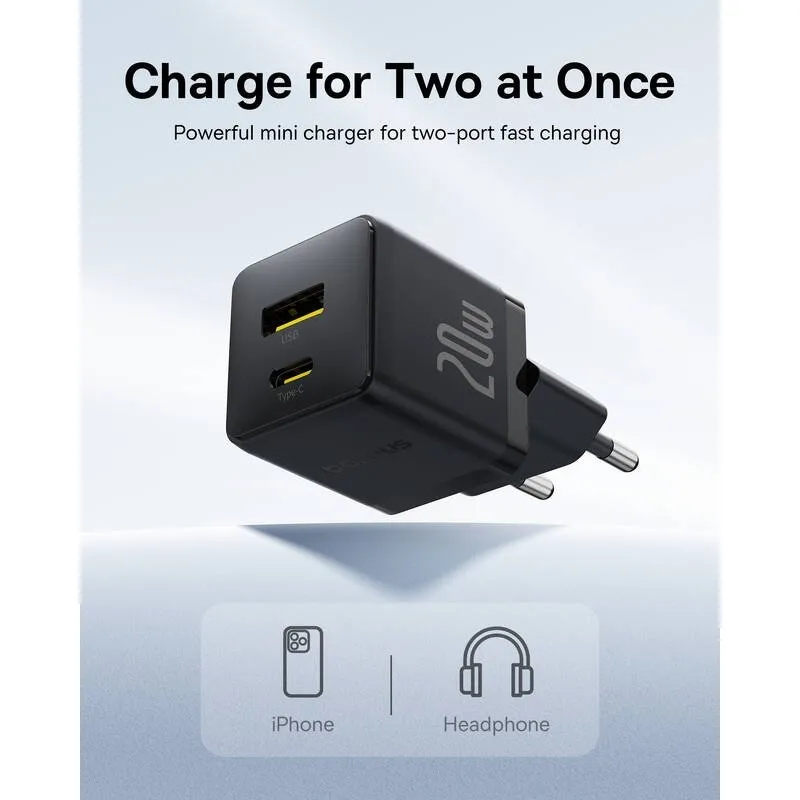 Baseus Palm Fast Nabíjačka USB-A + USB-C 20W Black