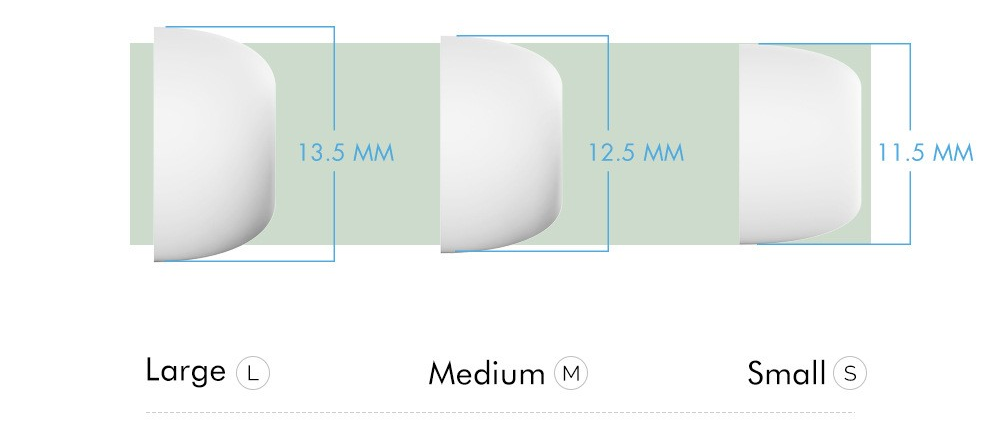 Balenie obsahuje veľkosti S, M a L, takže si jednoducho vyberiete tú, ktorá vám bude najviac vyhovovať. Biele silikónové koncovky do slúchadiel predstavujú praktickú náhradu za opotrebované alebo stratené špunty a pomôžu vrátiť slúchadlám pôvodné pohodlie.