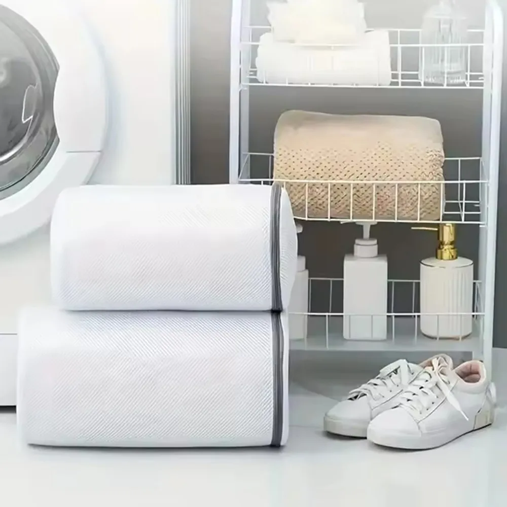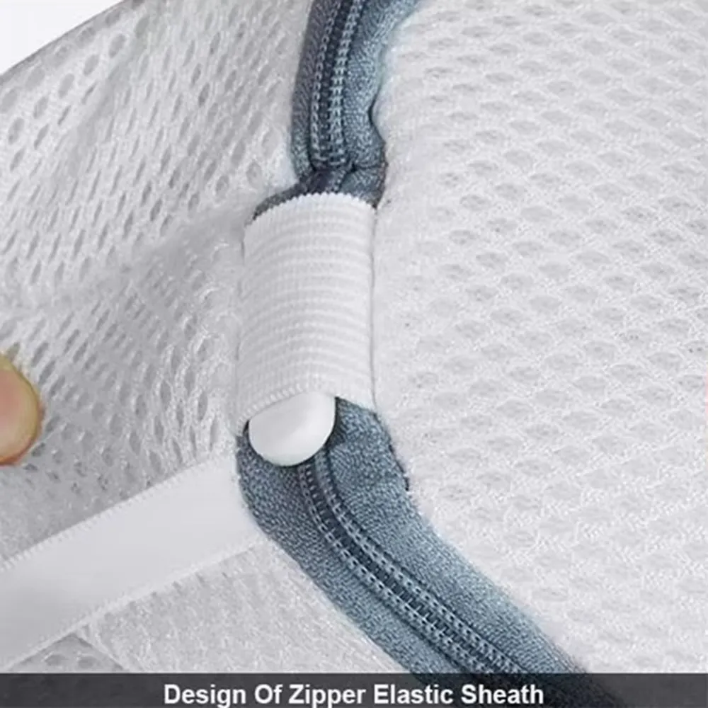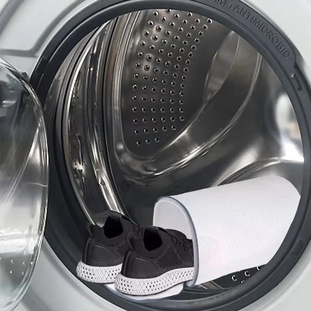 Pevná a priedušná sieťovina umožňuje dôkladné vypranie bez obmedzenia prietoku vody. Zapínanie na zips zabezpečuje bezpečné uzavretie sáčku počas prania a uľahčuje manipuláciu pri vkladaní aj vyberaní obuvi. Praktické riešenie na pravidelnú domácu starostlivosť o obuv.