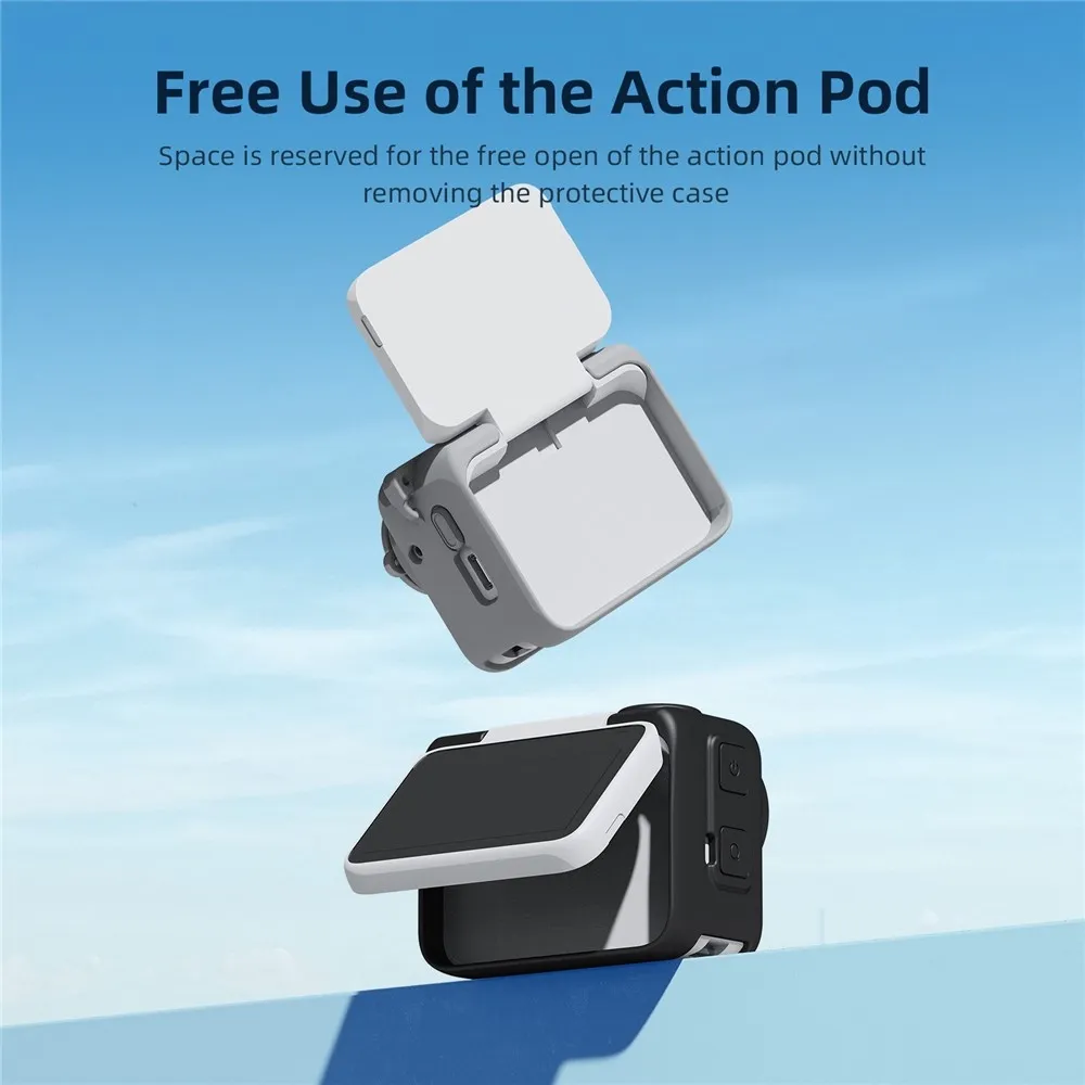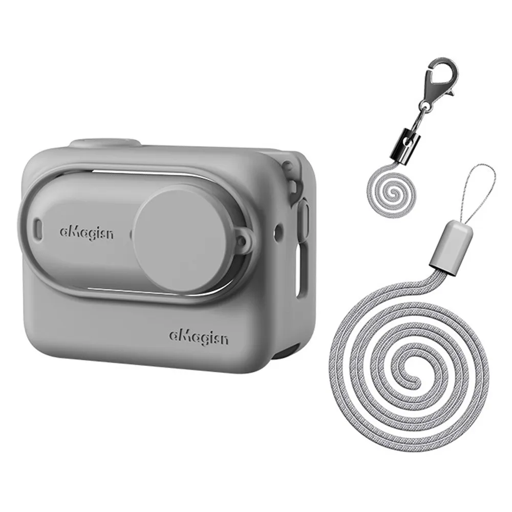 Je vyrobený z pružného silikónu, ktorý tlmí drobné nárazy a zlepšuje úchop pri držaní kamery. Ľahká konštrukcia výrazne nezvyšuje hmotnosť zariadenia a zachováva jeho kompaktné rozmery. Súčasťou je aj poistná šnúrka proti strate a praktická šnúrka na krk.