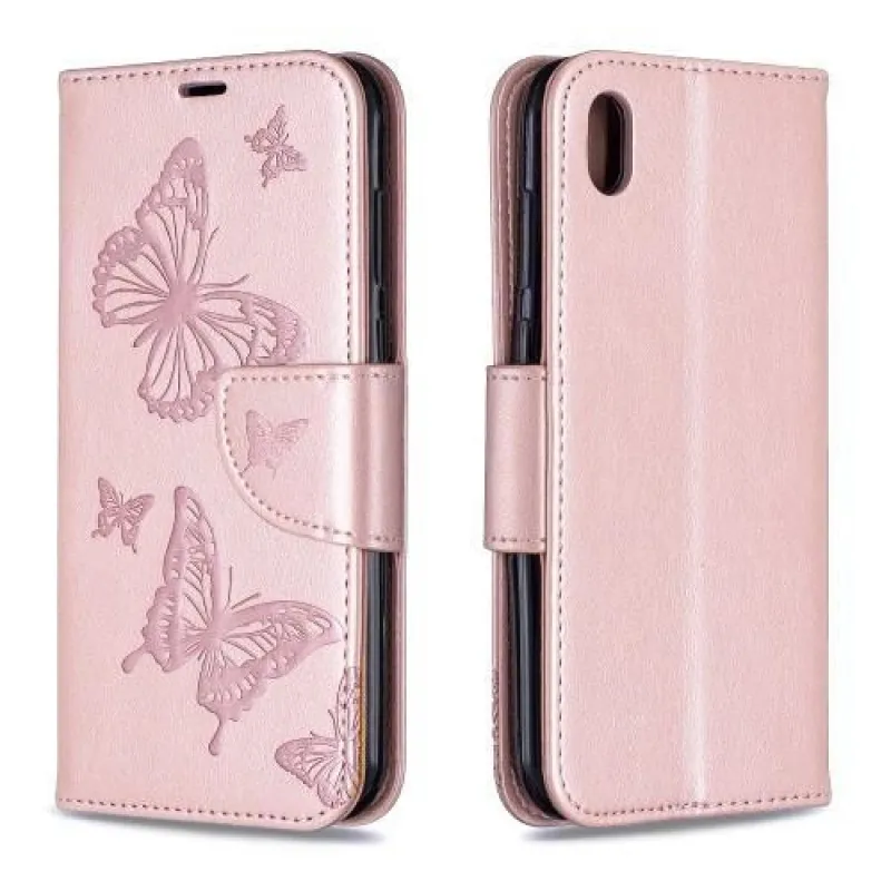 Butterflies PU kožené peněženkové puzdro na mobil Huawei Y5 (2019) / Honor 8S - růžovozlaté
