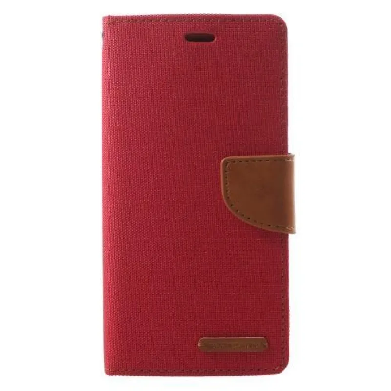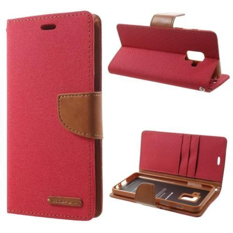 Kvalitní canvas PU kožené/textilní pouzdro na Samsung Galaxy A8 Plus (2018) - červené za super cenu! Typ pouzdra: peněženkové pouzdro.