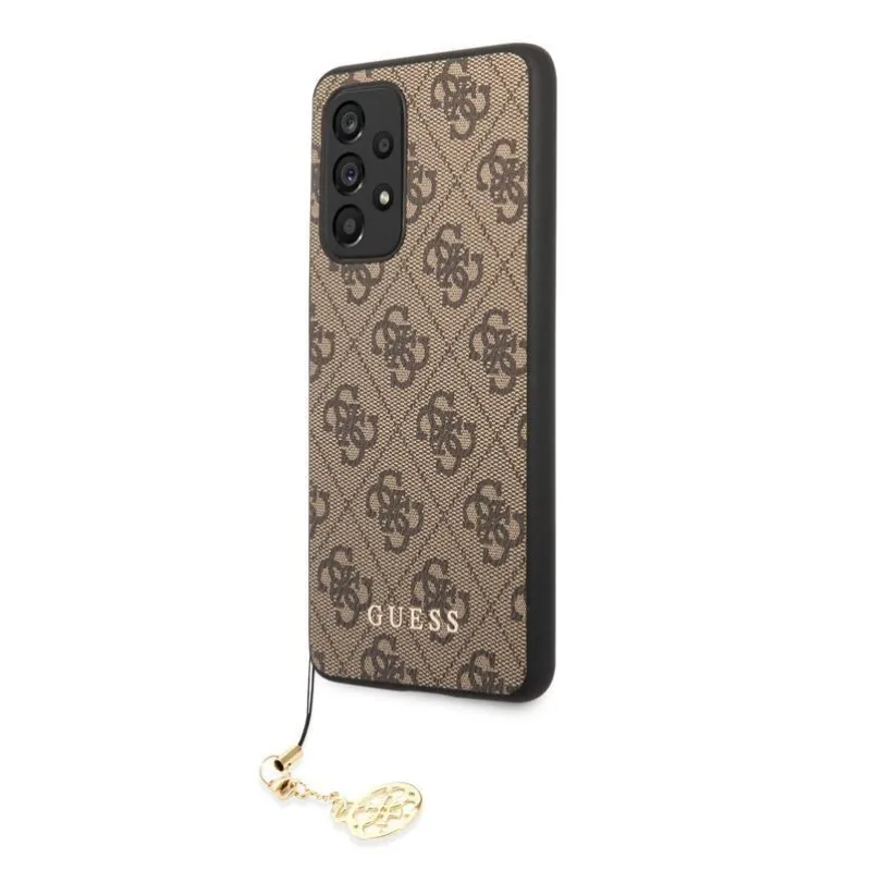 Guess charms gélový obal s pevným chrbtom na Samsung Galaxy A53 5G - hnedý