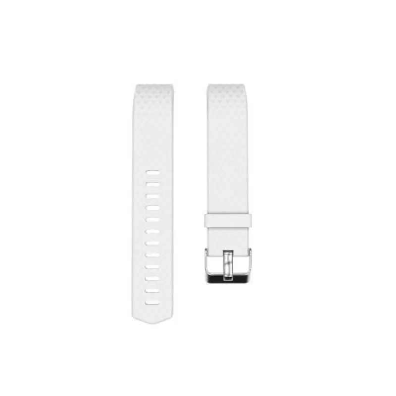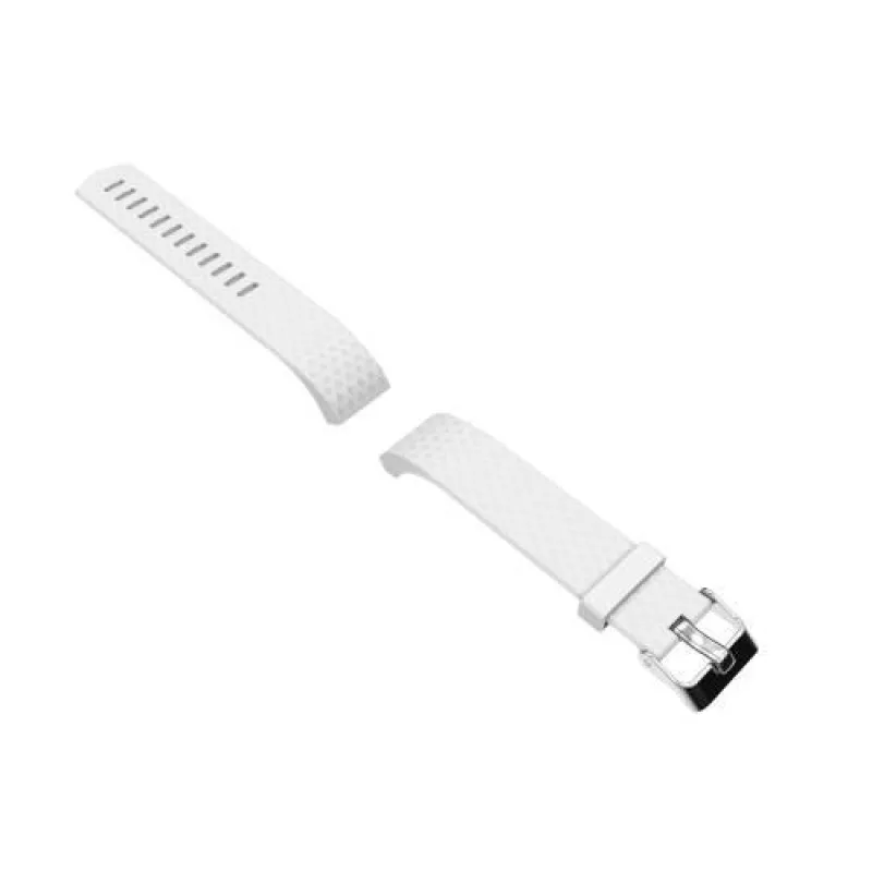 Pružný silikónový remienok na chytré hodinky Fitbit Charge 2 v bielej farbe . Ľahký materiál sa ľahko nasadzuje a zase dáva dole zo zápästia. V prípade nečistôt ho môžete umyť vodou. Remienok je vyrobený vo veľkosti S.