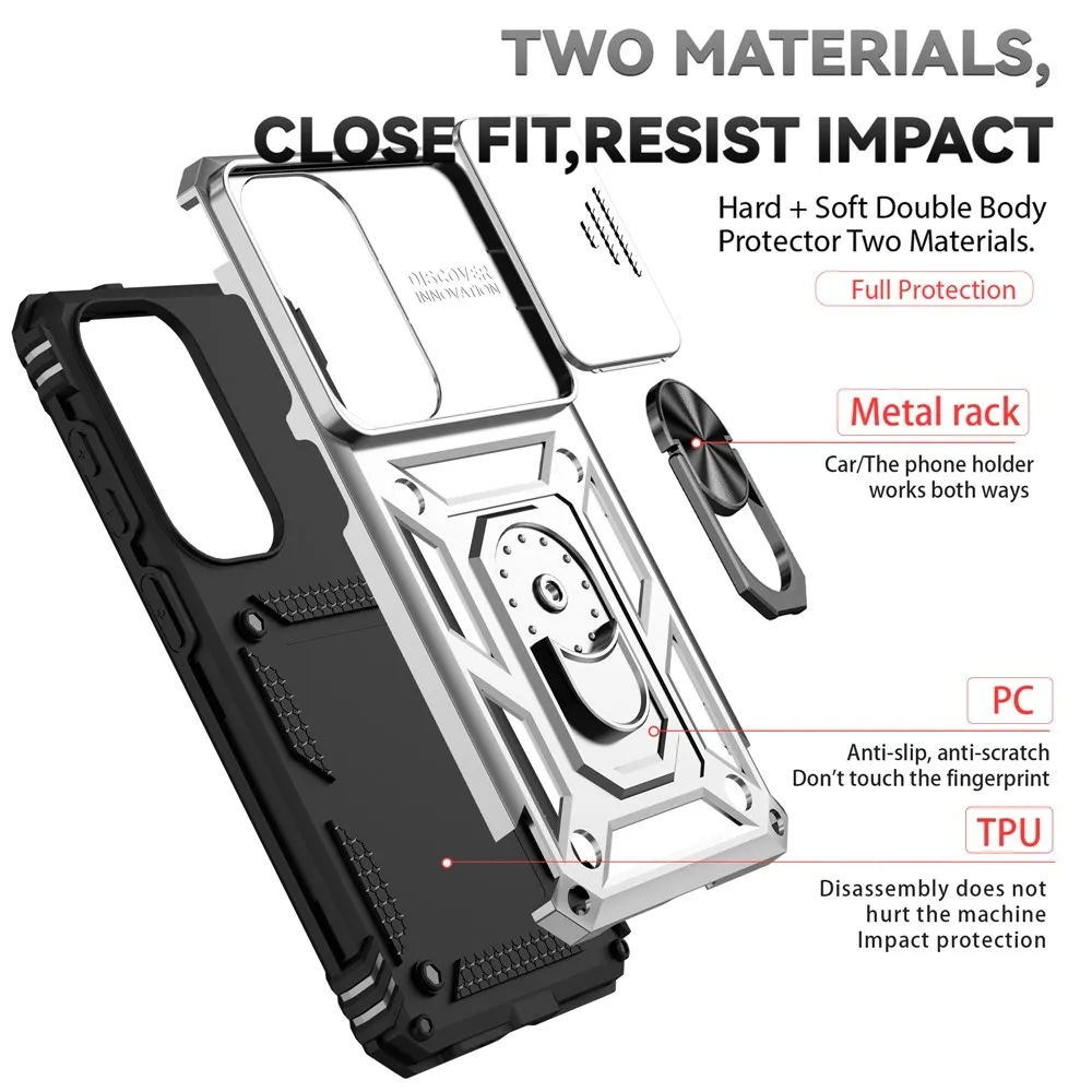 Slide odolný hybridný kryt prináša bezpečie vášmu telefónu po celom obvode a zozadu, pohyblivý kryt šošovky a mierne zvýšené okraje zaisťujú dokonalú ochranu citlivých častí. Kovová časť umožňuje použitie magnetických držiakov do auta.