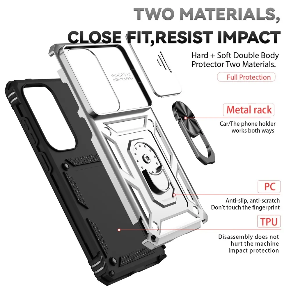 Slide odolný hybridný kryt prináša bezpečie vášmu telefónu po celom obvode a zozadu, pohyblivý kryt šošovky a mierne zvýšené okraje zaisťujú dokonalú ochranu citlivých častí. Kovová časť umožňuje použitie magnetických držiakov do auta.