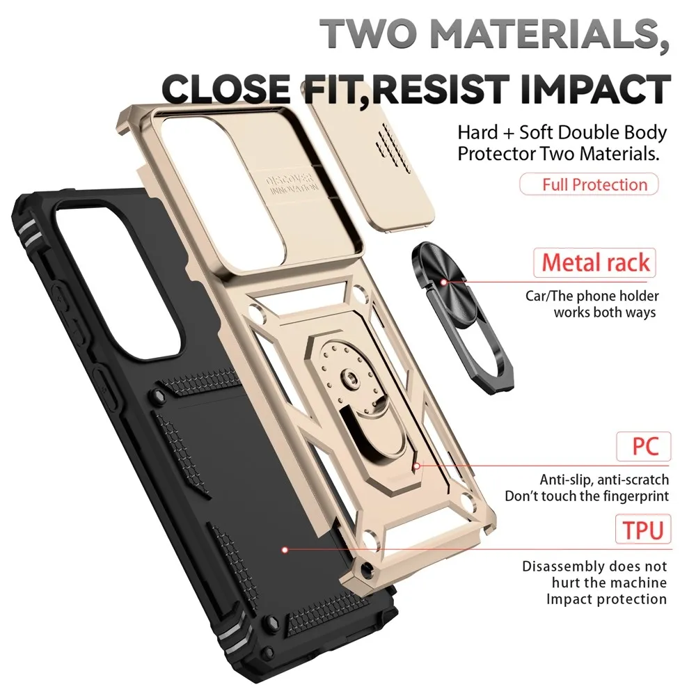 Slide odolný hybridný kryt prináša bezpečie vášmu telefónu po celom obvode a zozadu, pohyblivý kryt šošovky a mierne zvýšené okraje zaisťujú dokonalú ochranu citlivých častí. Kovová časť umožňuje použitie magnetických držiakov do auta.