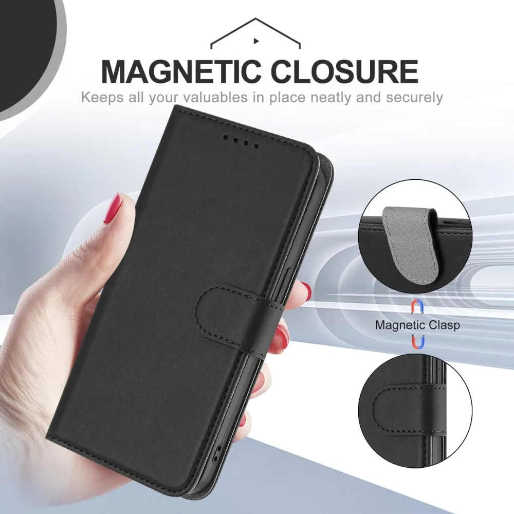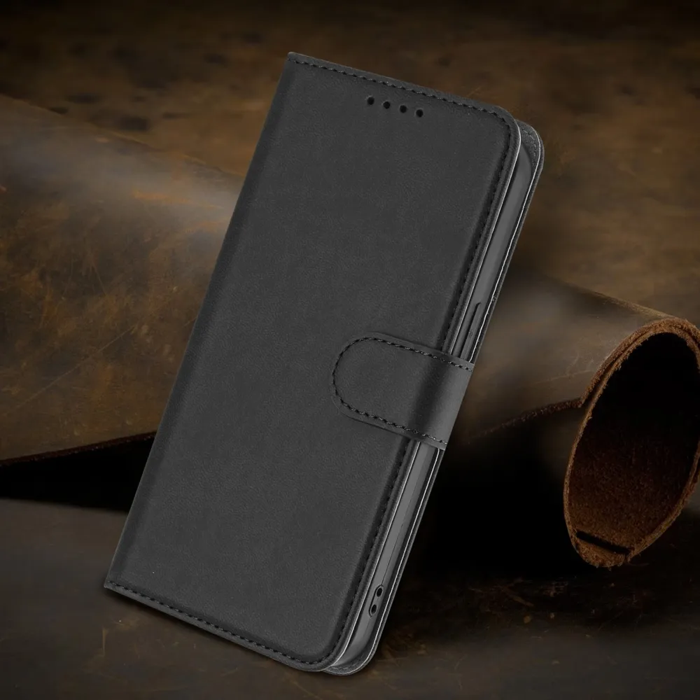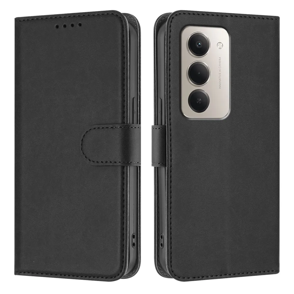 ✅【Prémiová umelá koža】 Púzdro Snap v čiernej farbe pre mobilný telefón Xiaomi Redmi 15 4G/5G (171mm) je vyrobené z vysoko kvalitnej umelej kože, ponúka elegantný a odolný dizajn, ktorý vylepšuje vzhľad telefónu.