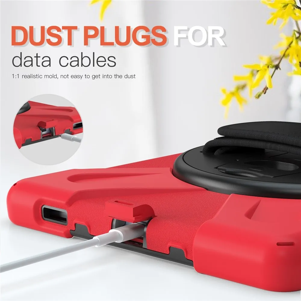 Červený odolný obal Strap s držiakom na ruku a ramenným popruhom na tablet Lenovo Tab M10 Plus TB-X606F/X/V