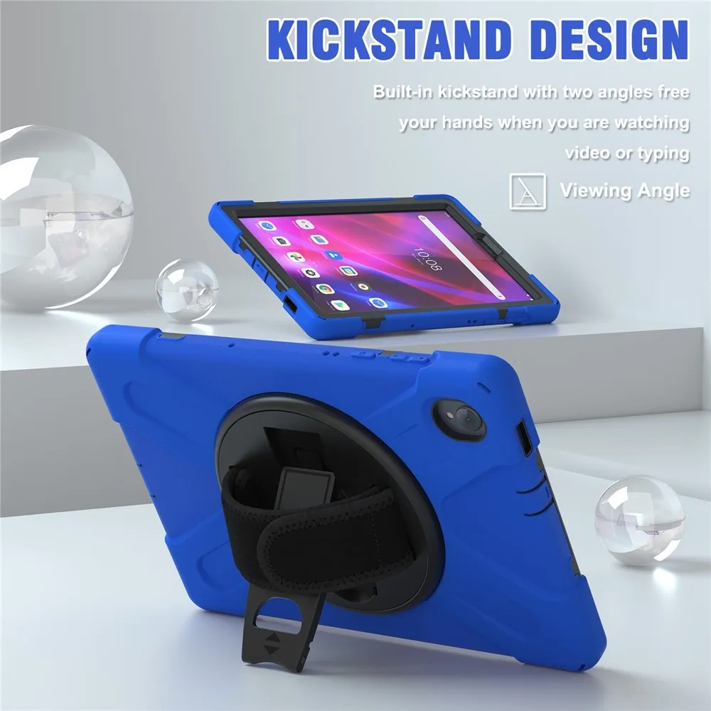 Modrý odolný obal Strap s držiakom na ruku a ramenným popruhom na tablet Lenovo Tab M10 Plus TB-X606F/X/V