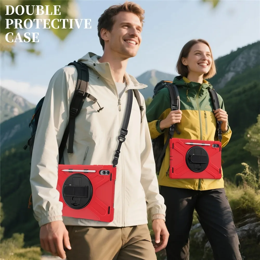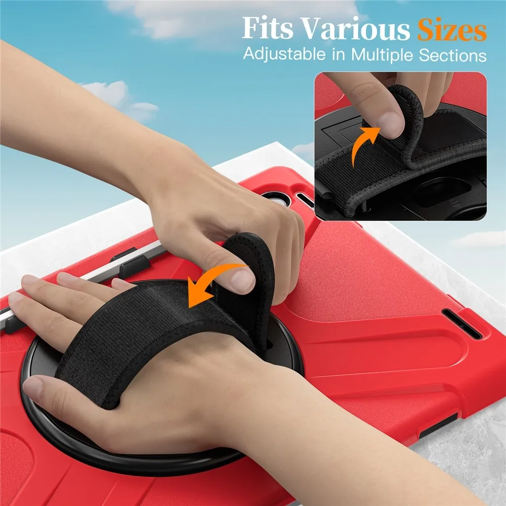 Strap odolný kryt s držiakom na ruku a ramenným popruhom na Samsung Galaxy Tab S11 Ultra - červený