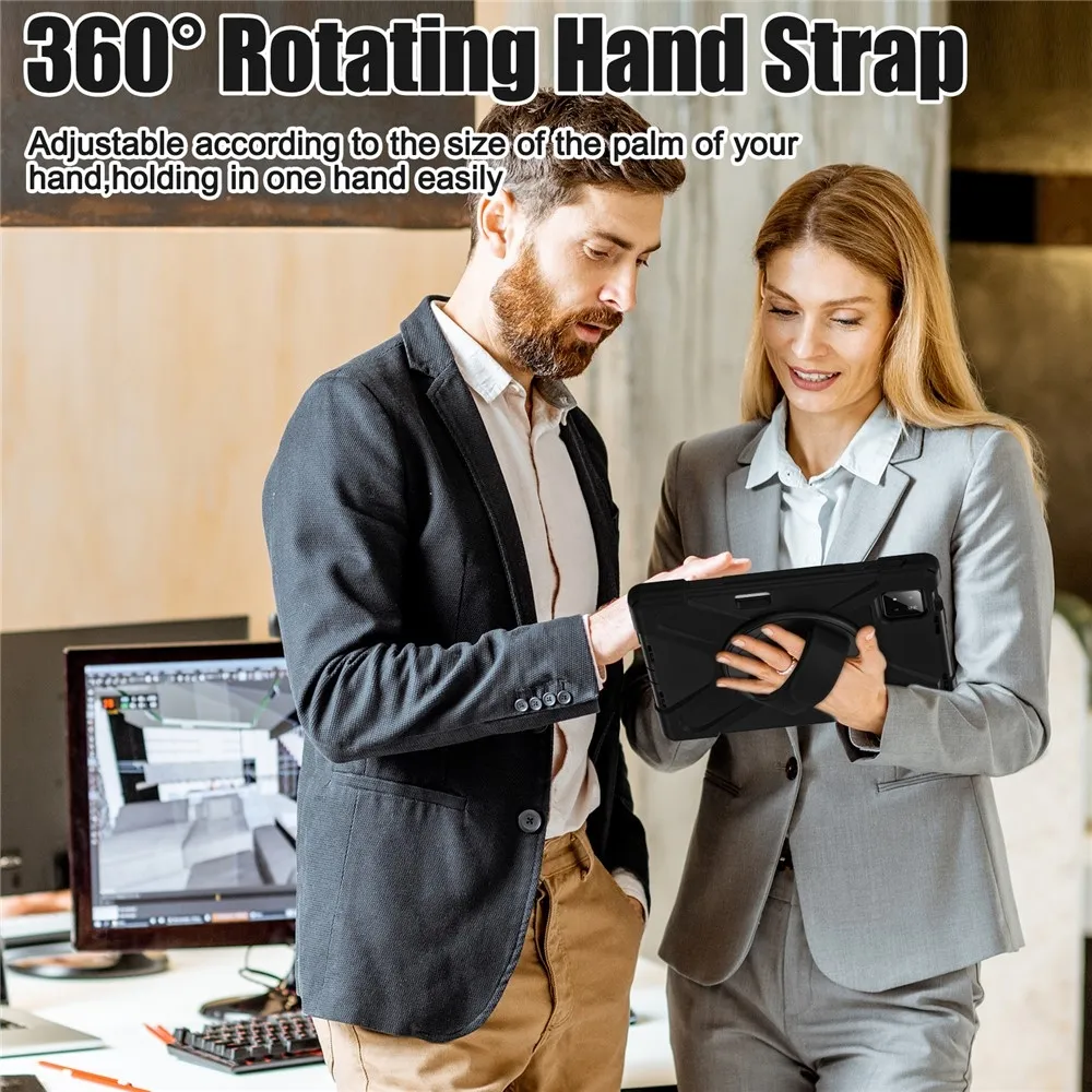 Strap odolný kryt s držiakom na ruku a ramenným popruhom na Xiaomi Pad 8/8 Pro/7/7 Pro - čierny