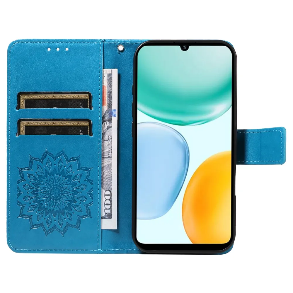 Modré peňaženkové puzdro Sunflower na mobil Honor X5c Plus