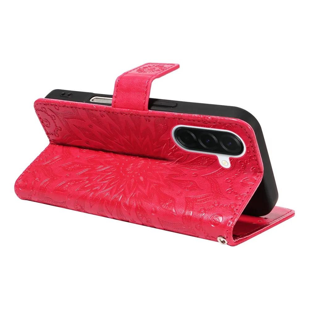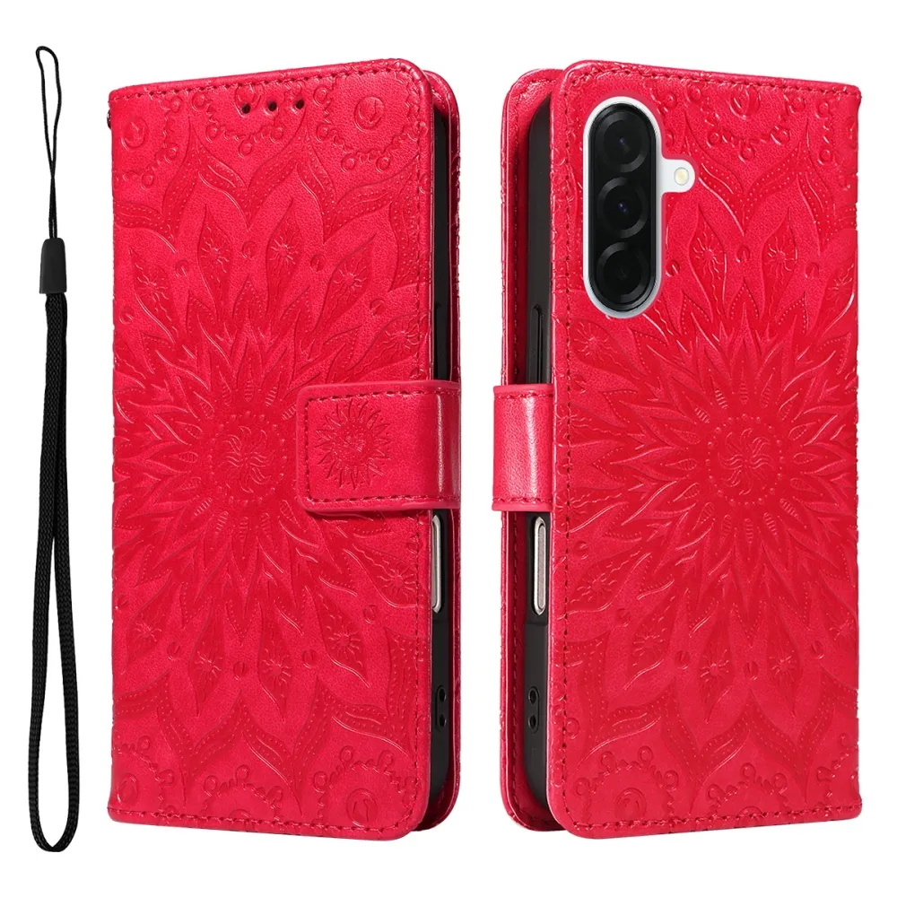 Červené peňaženkové puzdro Sunflower na mobil Samsung Galaxy A37 5G