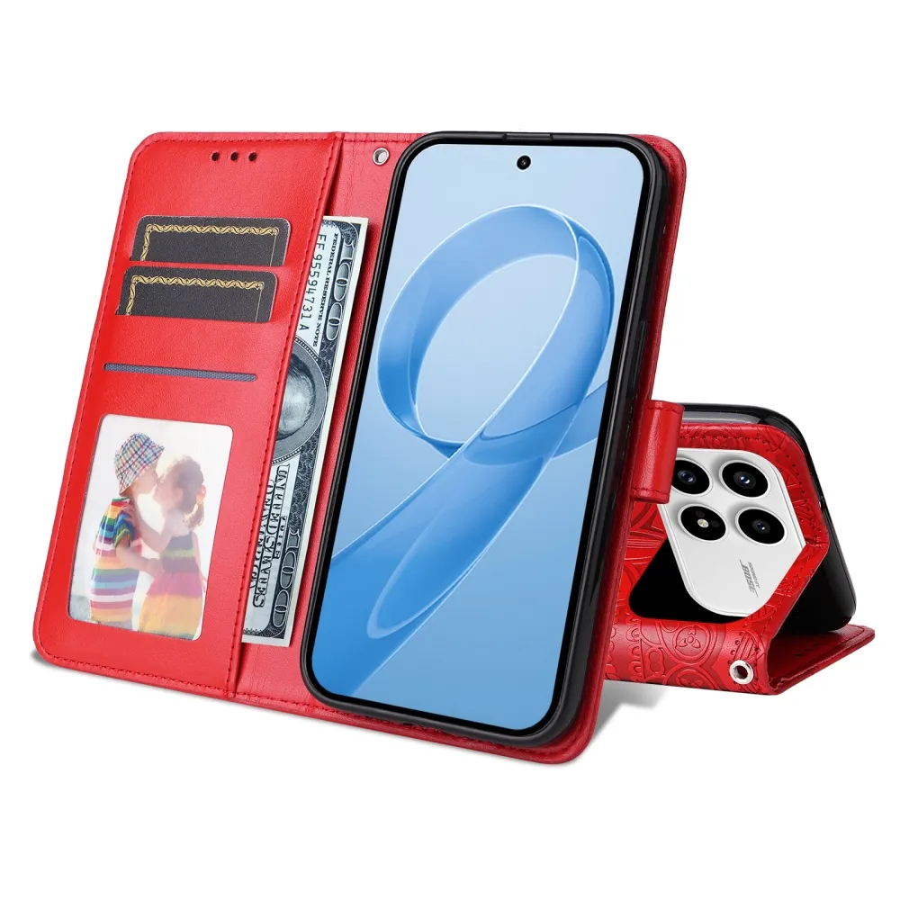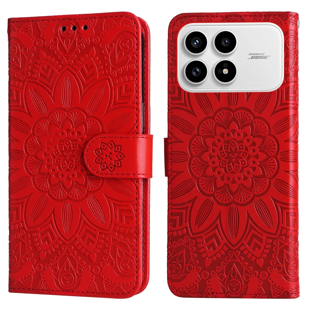 Červené peňaženkové puzdro Sunflower na mobil Xiaomi Poco F8 Pro 5G