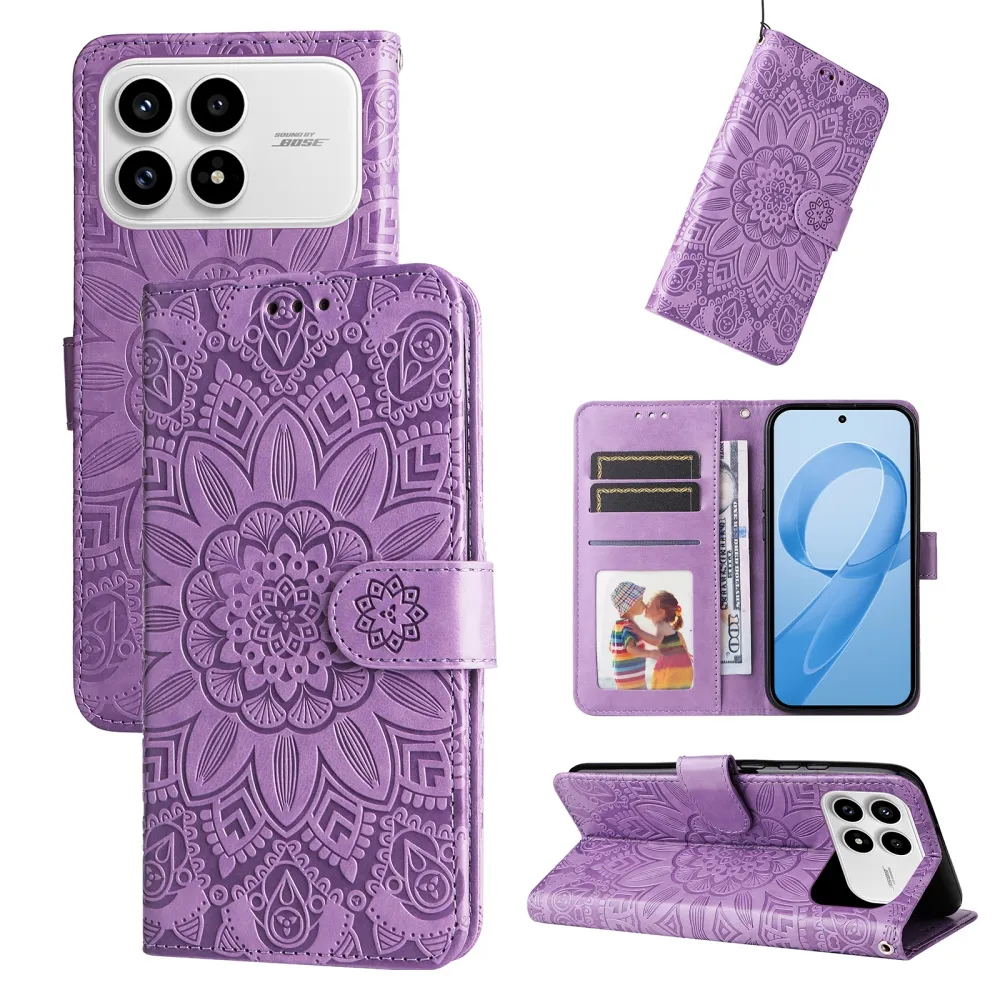 Fialové peňaženkové puzdro Sunflower na mobil Xiaomi Poco F8 Pro 5G