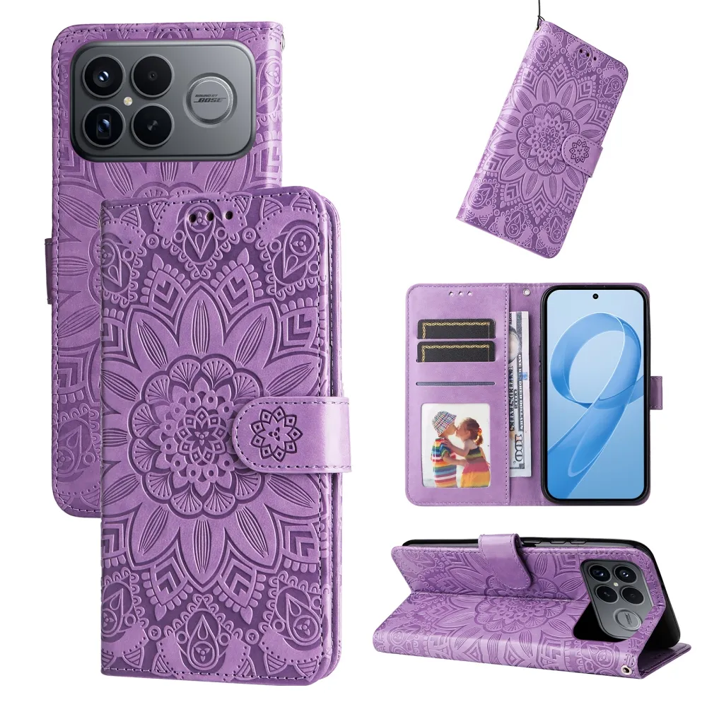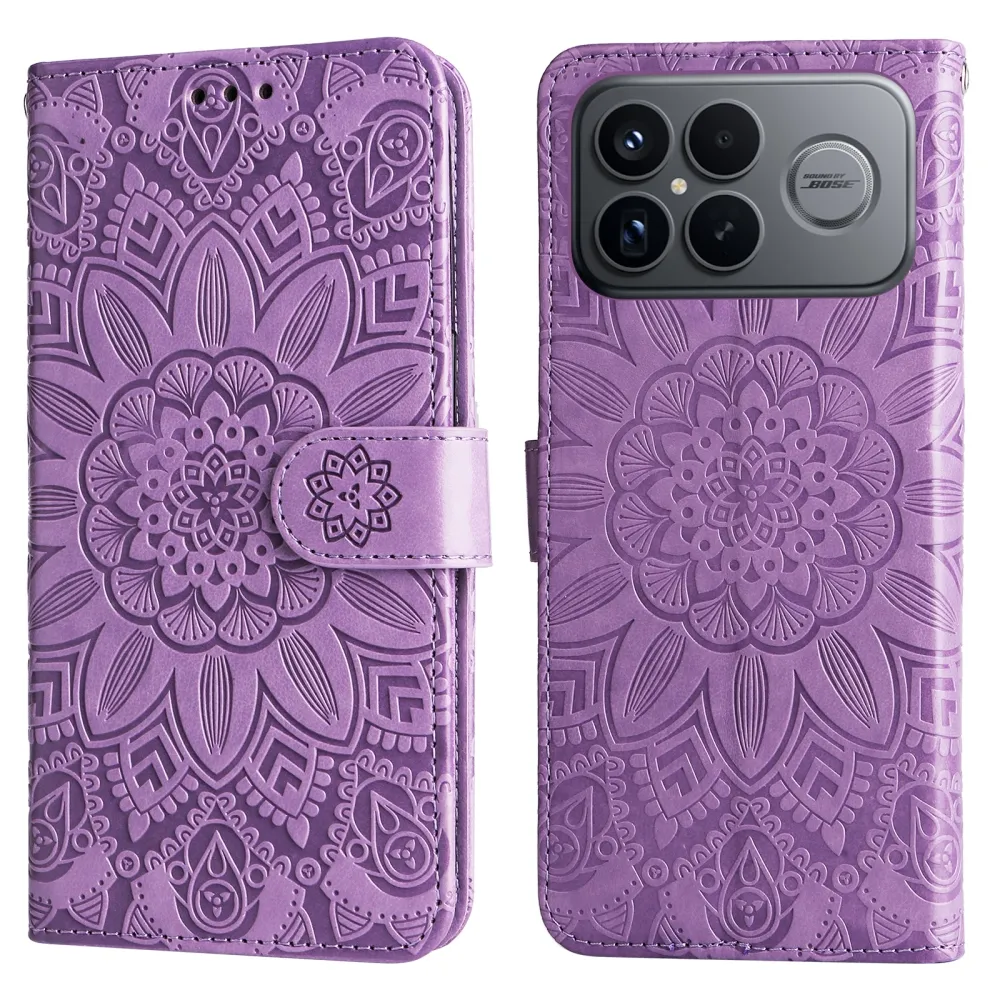 Fialové peňaženkové puzdro Sunflower na mobil Xiaomi Poco F8 Ultra 5G