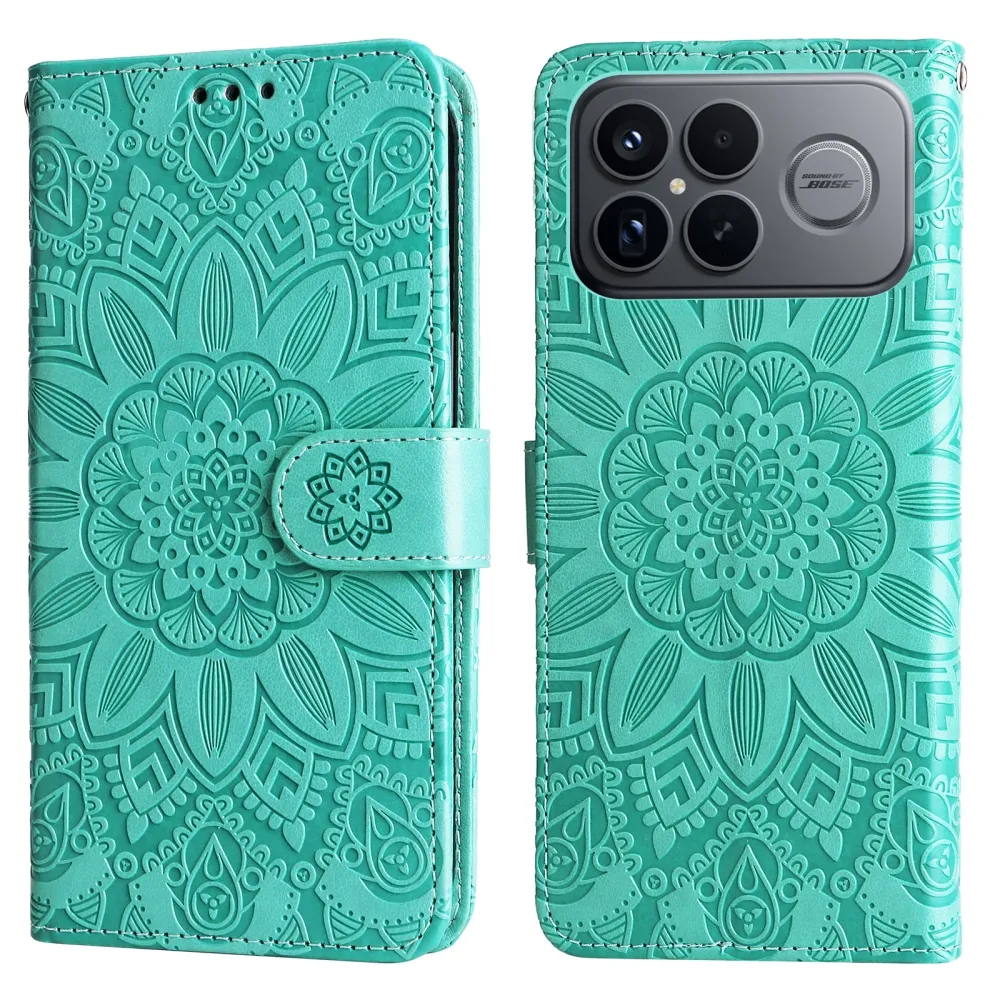 Modrozelené peňaženkové puzdro Sunflower na mobil Xiaomi Poco F8 Ultra 5G