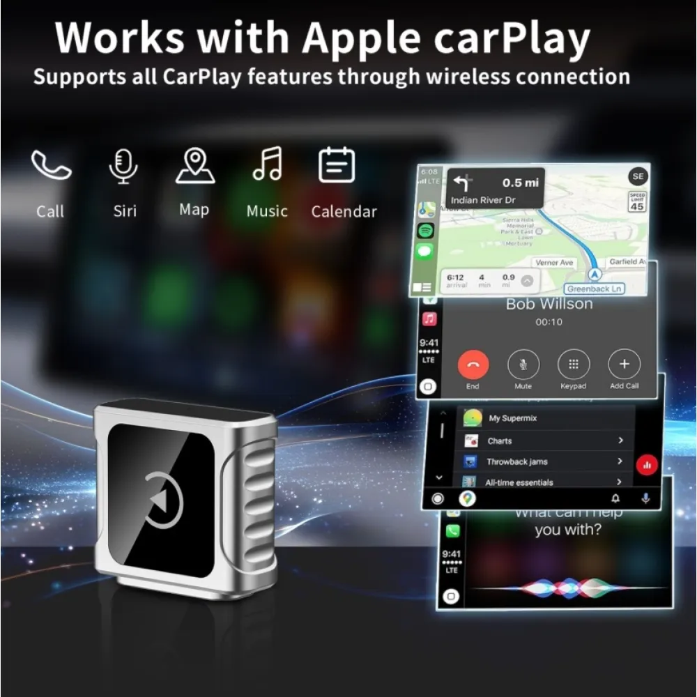 Jednoducho zapojíte do USB portu vozidla a počas niekoľkých sekúnd môžete využívať všetky funkcie CarPlay alebo Android Auto bez kábla.