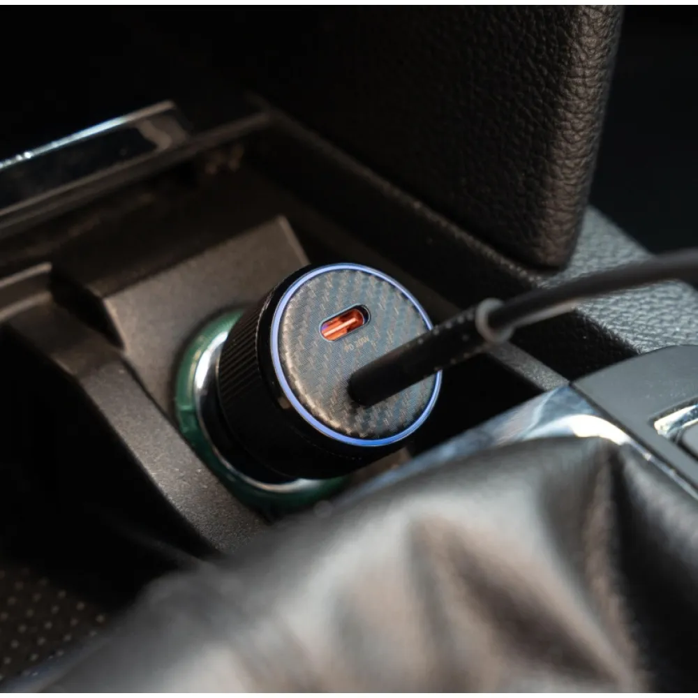 Kompaktná a výkonná autonabíjačka s dvojicou USB-C portov a podporou PD 3.0. Umožňuje nabíjať dve zariadenia súčasne výkonom až 20W. Modré LED podsvietenie uľahčuje pripojenie kábla aj pri jazde v noci.