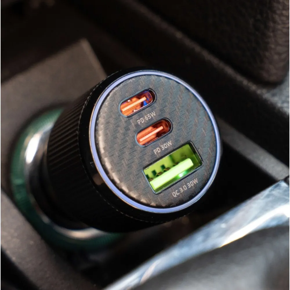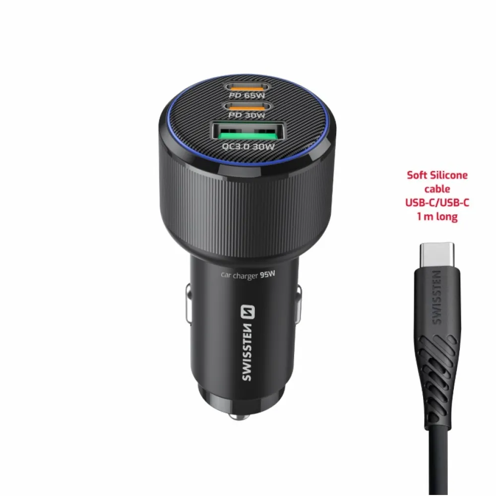 Profesionálna autonabíjačka s podporou PD 3.0 a QC 4.0, navrhnutá pre rýchle nabíjanie notebookov, tabletov aj smartfónov. Celkový výkon až 95 W zvládne napájať aj náročné zariadenia počas jazdy. Súčasťou balenia je 1m USB-C/USB-C kábel (3A, 60W, soft silicone). Modrý LED prstenec uľahčuje pripojenie káblov aj v tme.