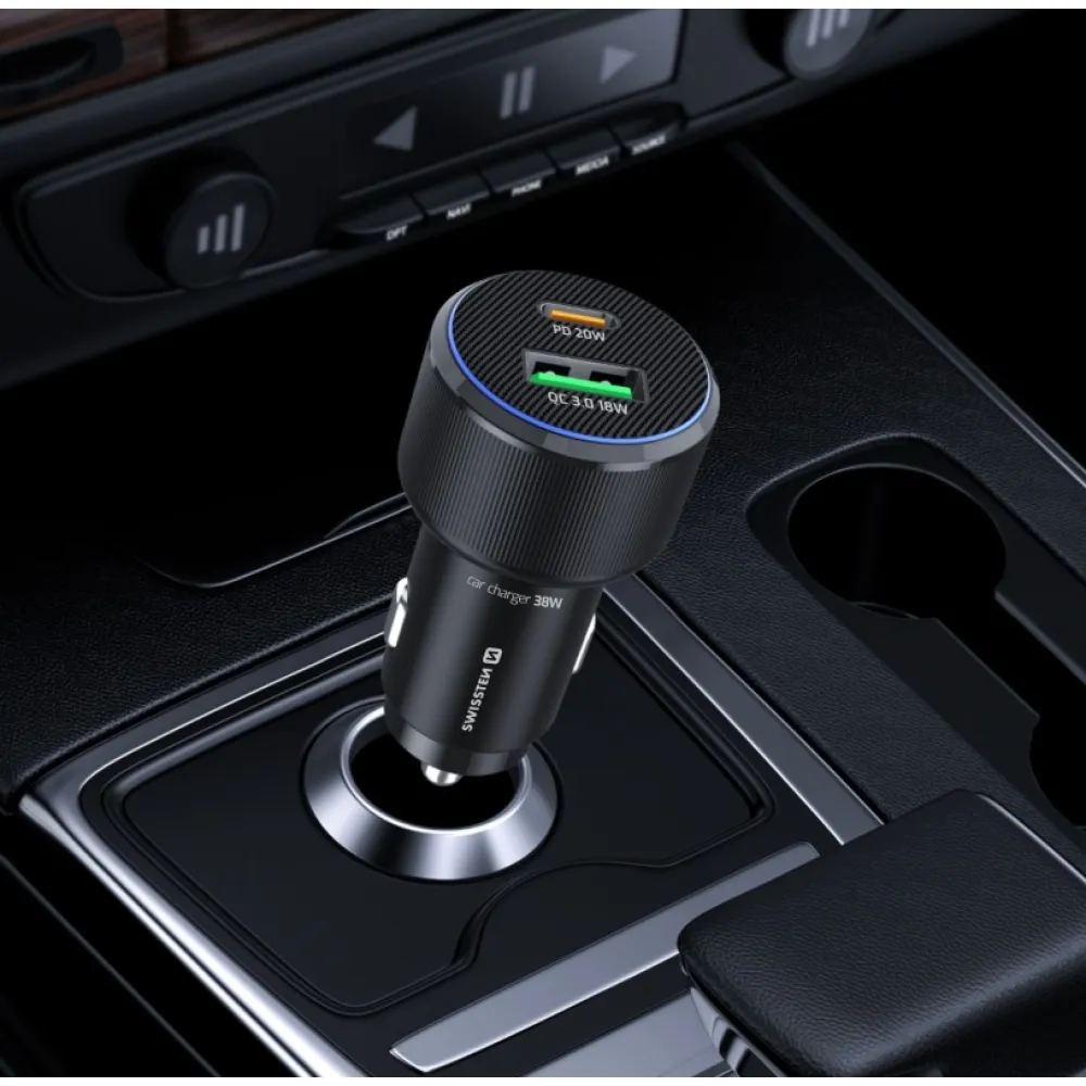 Výkonná a kompaktná autonabíjačka s podporou rýchleho nabíjania PD 3.0 a QC 3.0. Vďaka kombinácii portov USB-C a USB-A dokáže rýchlo a bezpečne dobíjať až dve zariadenia súčasne. Modré LED osvetlenie v obvode nabíjačky uľahčuje pripojenie kábla aj pri jazde v noci.