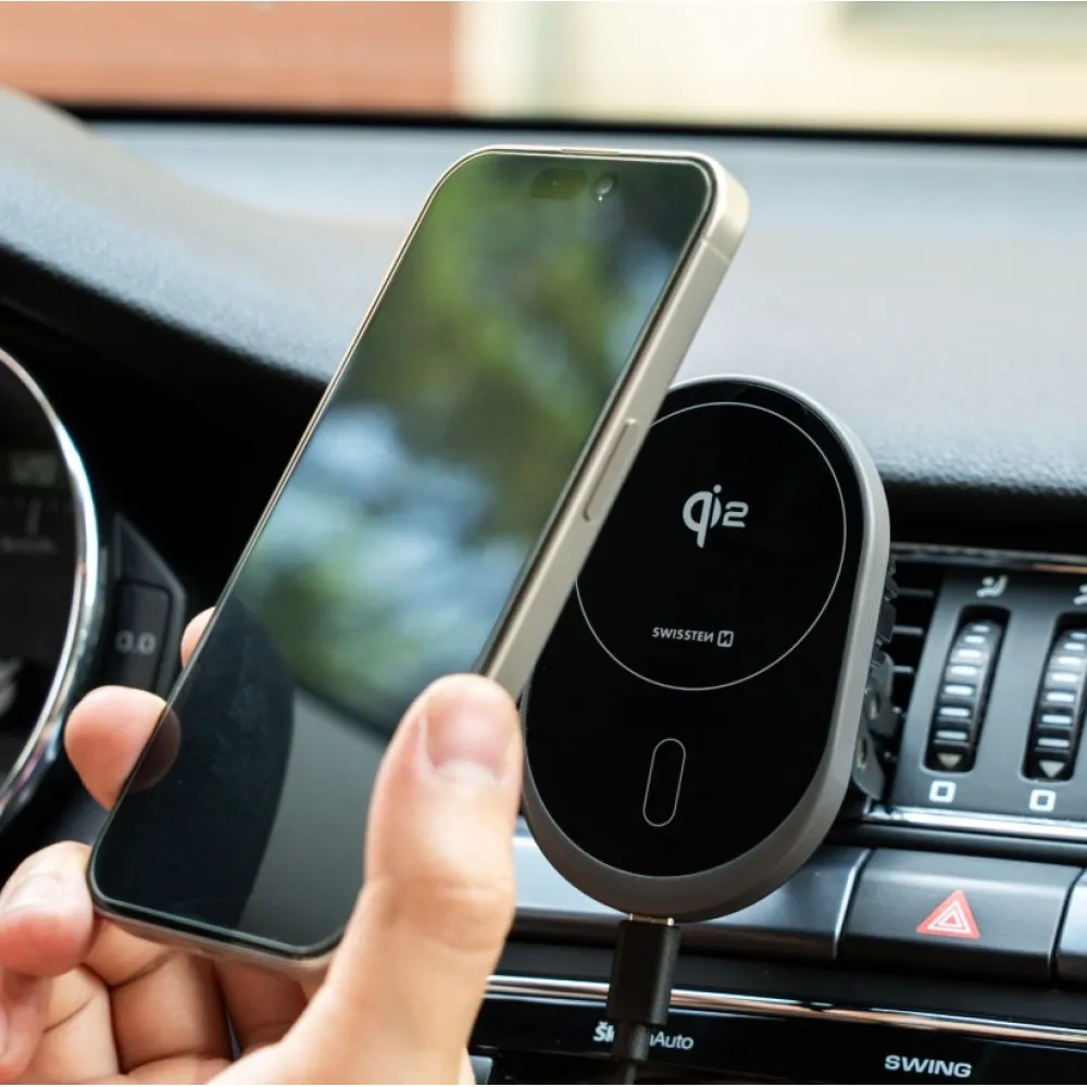 SWISSTEN MagRide je moderný držiak do auta s integrovanou bezdrôtovou nabíjačkou, ktorá podporuje najnovší štandard Qi2 a bez problémov nabije váš iPhone, Samsung Galaxy aj ďalšie kompatibilné zariadenia. Nabíja až výkonom 15 W a vďaka magnetickému vystredeniu zaisťuje perfektné držanie a maximálnu účinnosť počas jazdy. Odolné telo, jednoduchá inštalácia a inteligentné bezpečnostné funkcie robia z MagRidu ideálneho spoločníka na cesty.