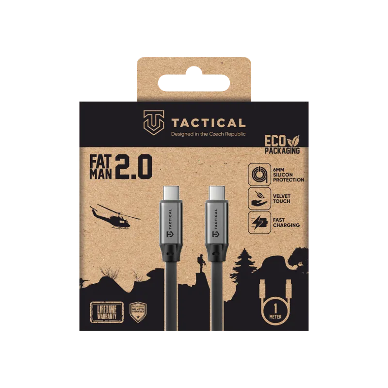 Taktický kábel Fat Man 2.0 USB-C/USB-C 1 m sivý