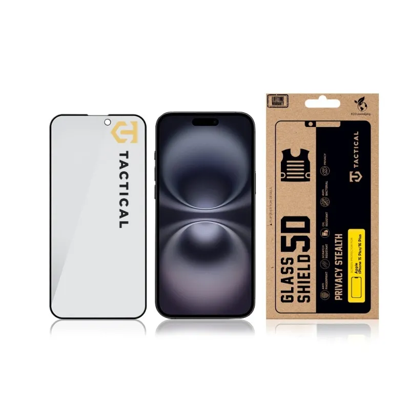 Taktický sklenený štít Privacy Stealth 5D sklo pre Apple iPhone 15 Plus/16 Plus Black