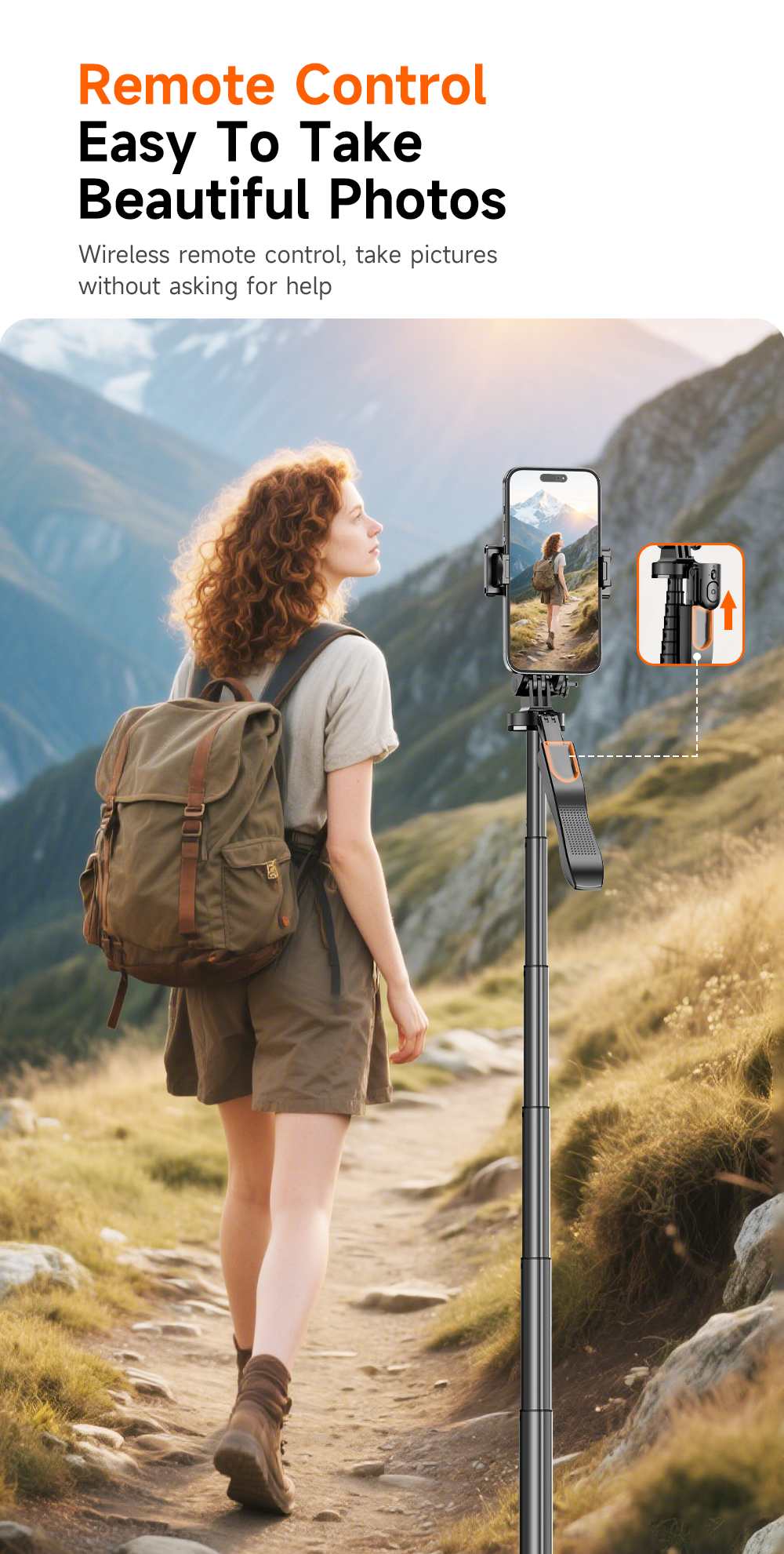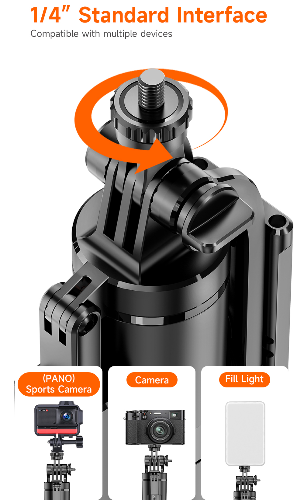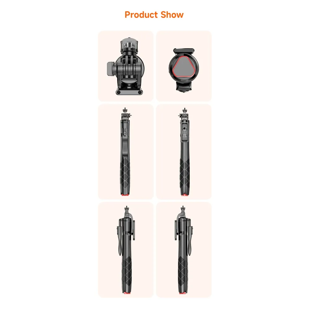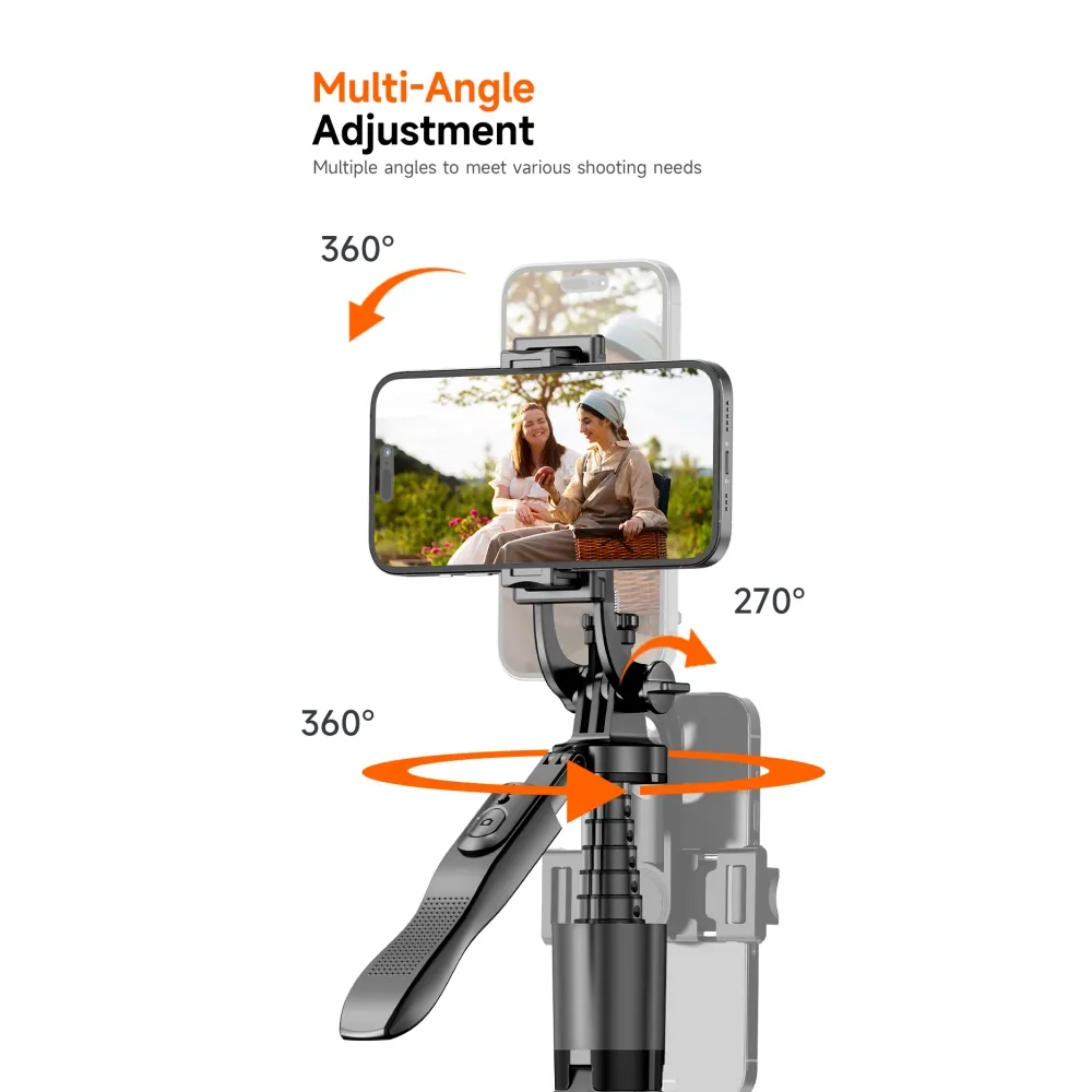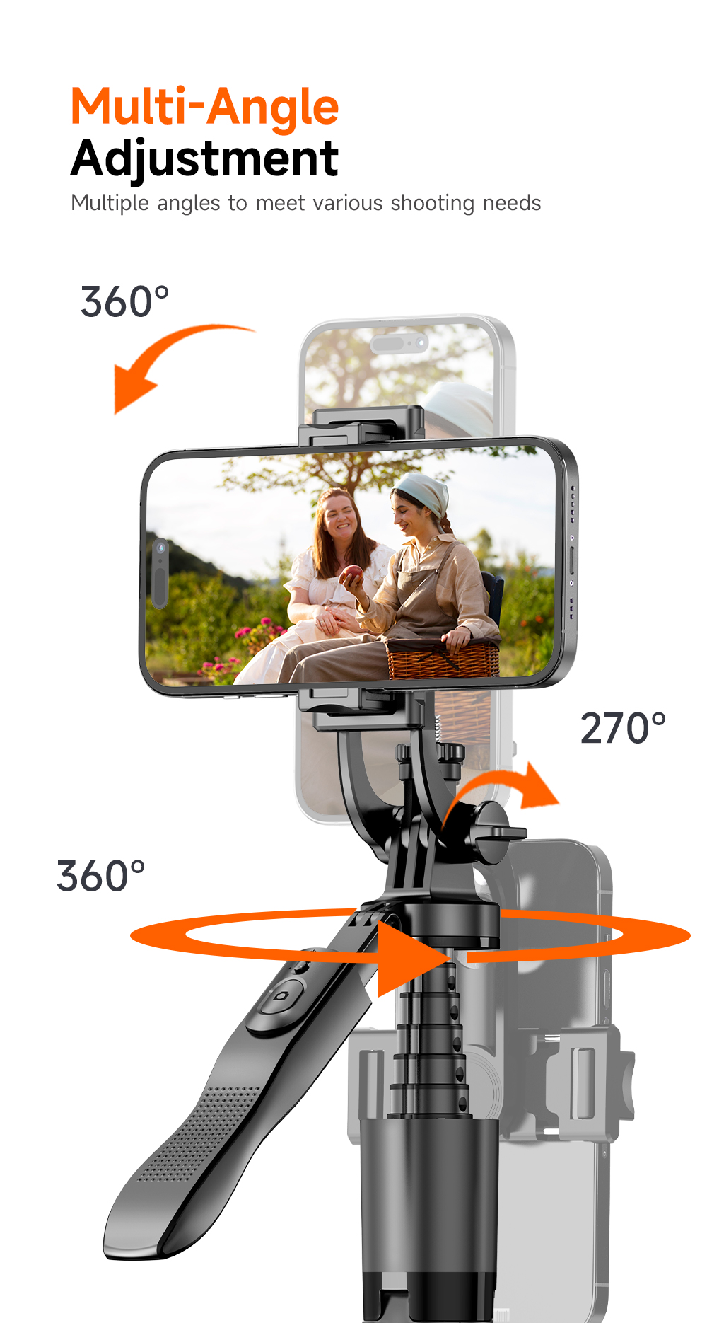 Tyč podporuje viacnásobné nastavenie uhla a plnú flexibilitu pri natáčaní. Držiak telefónu umožňuje otáčanie o 360°, kĺbová časť ponúka náklon až 270° a základňa umožňuje 360° rotáciu. Vhodné na horizontálne aj vertikálne snímanie.