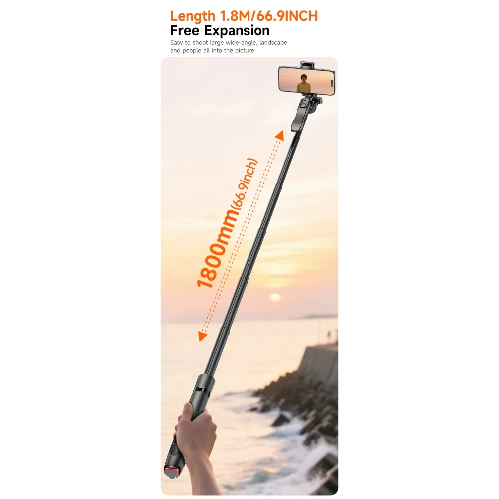 Multifunkčná selfie tyč L16-TT kombinuje výsuvnú hliníkovú konštrukciu s automaticky rozkladacím statívom. Umožňuje stabilné natáčanie, panoramatické snímanie aj pohodlné vlogovanie bez nutnosti držať zariadenie v ruke. Vďaka robustnej konštrukcii z ABS a hliníkovej zliatiny ponúka pevnosť, stabilitu a dlhú životnosť.