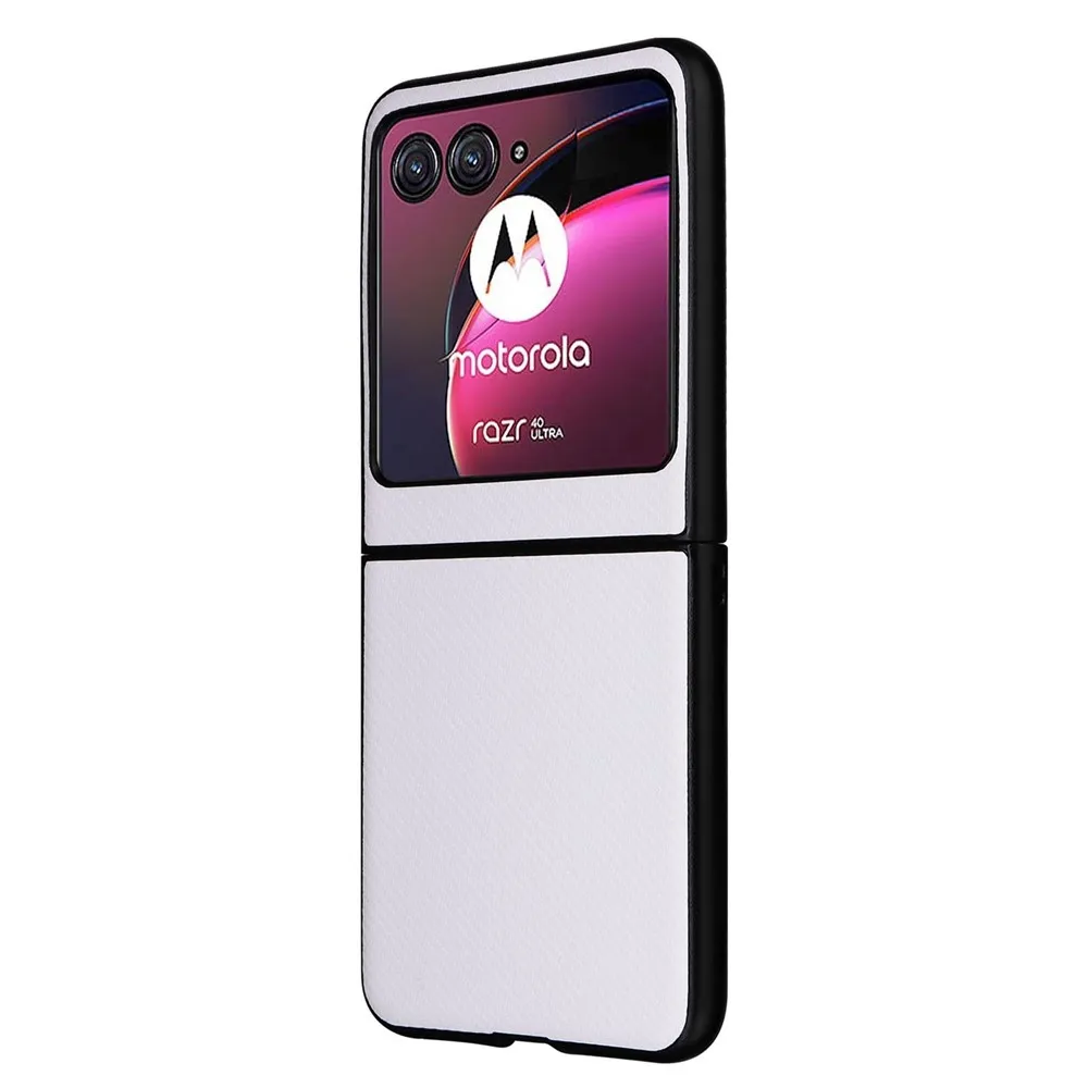 Textúry plastový kryt s umelou kožou na Motorola Razr 40 Ultra 5G - biely