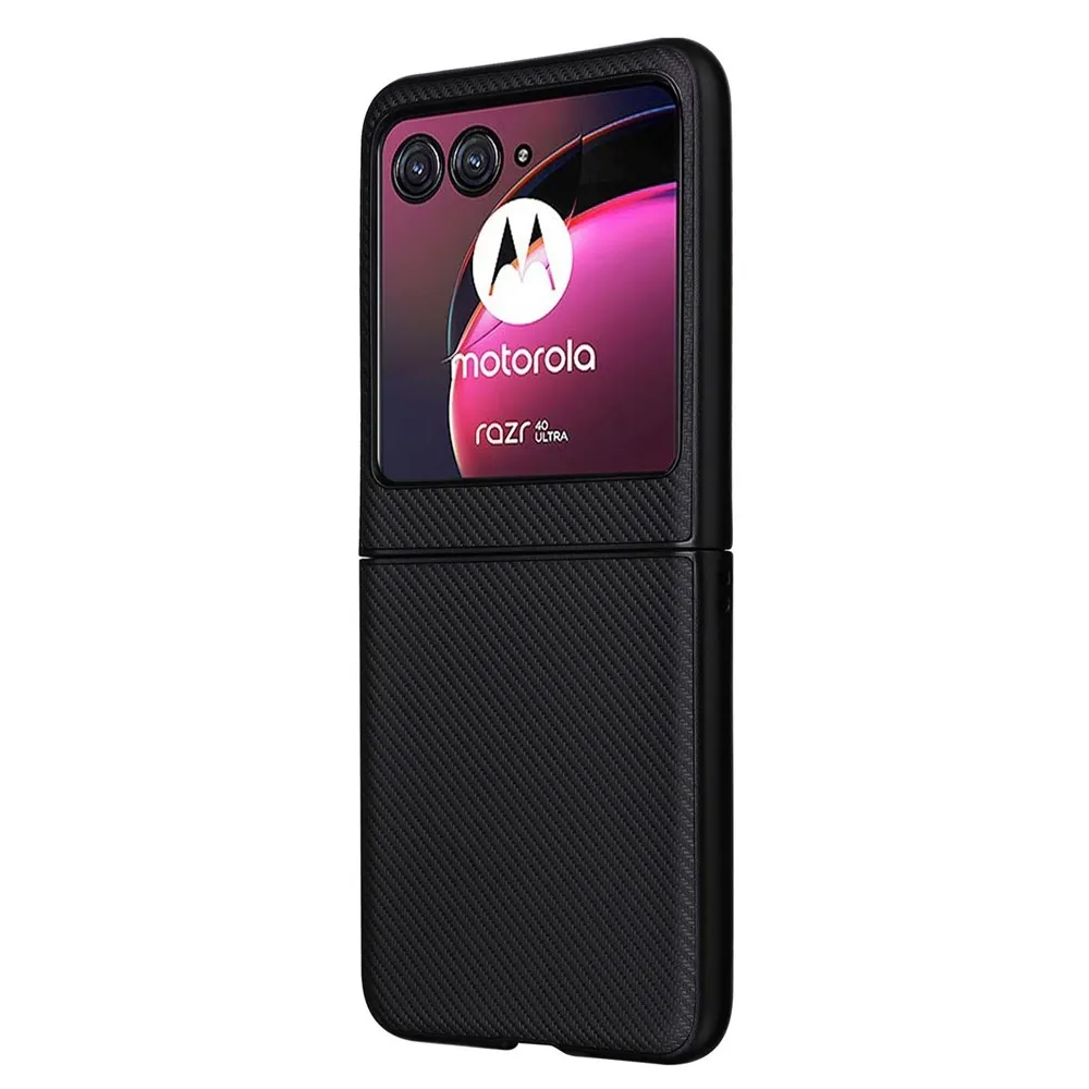 Textúry plastový kryt s umelou kožou na Motorola Razr 40 Ultra 5G - čierny