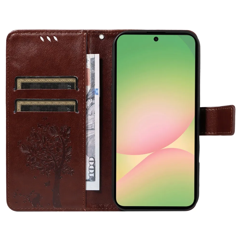 Hnedé peňaženkové puzdro Trees na mobil Samsung Galaxy A57 5G