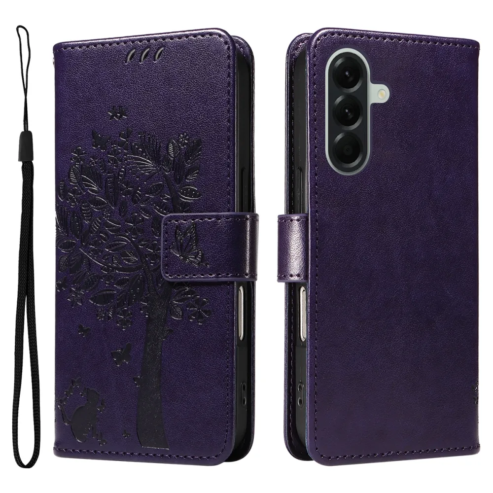Trees knižkové púzdro na Samsung Galaxy A57 5G - tmavofialové