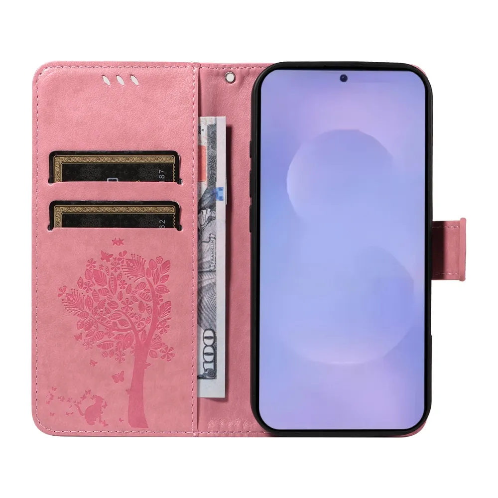 Ružové peňaženkové púzdro Trees na mobil Samsung Galaxy S26+
