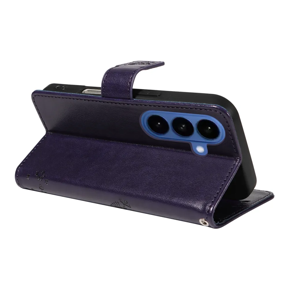Tmavofialové peňaženkové puzdro Trees na mobil Samsung Galaxy S26+