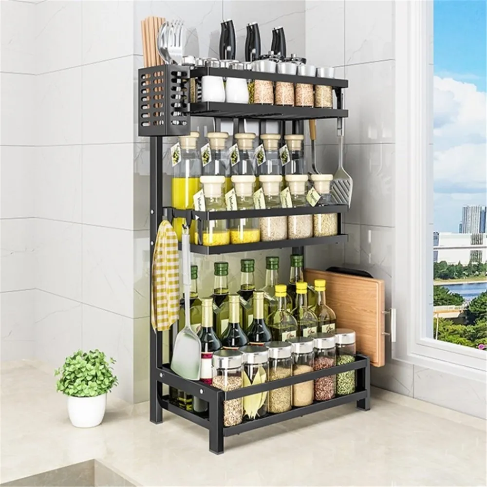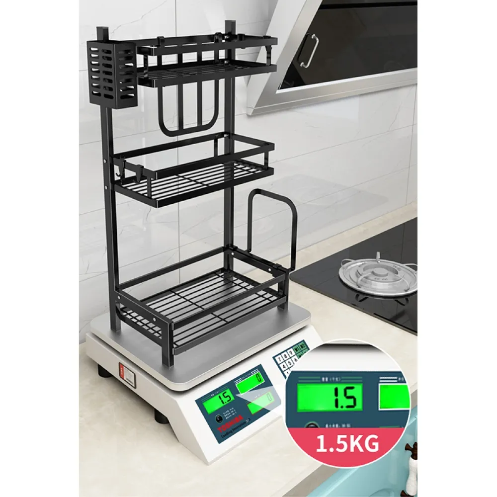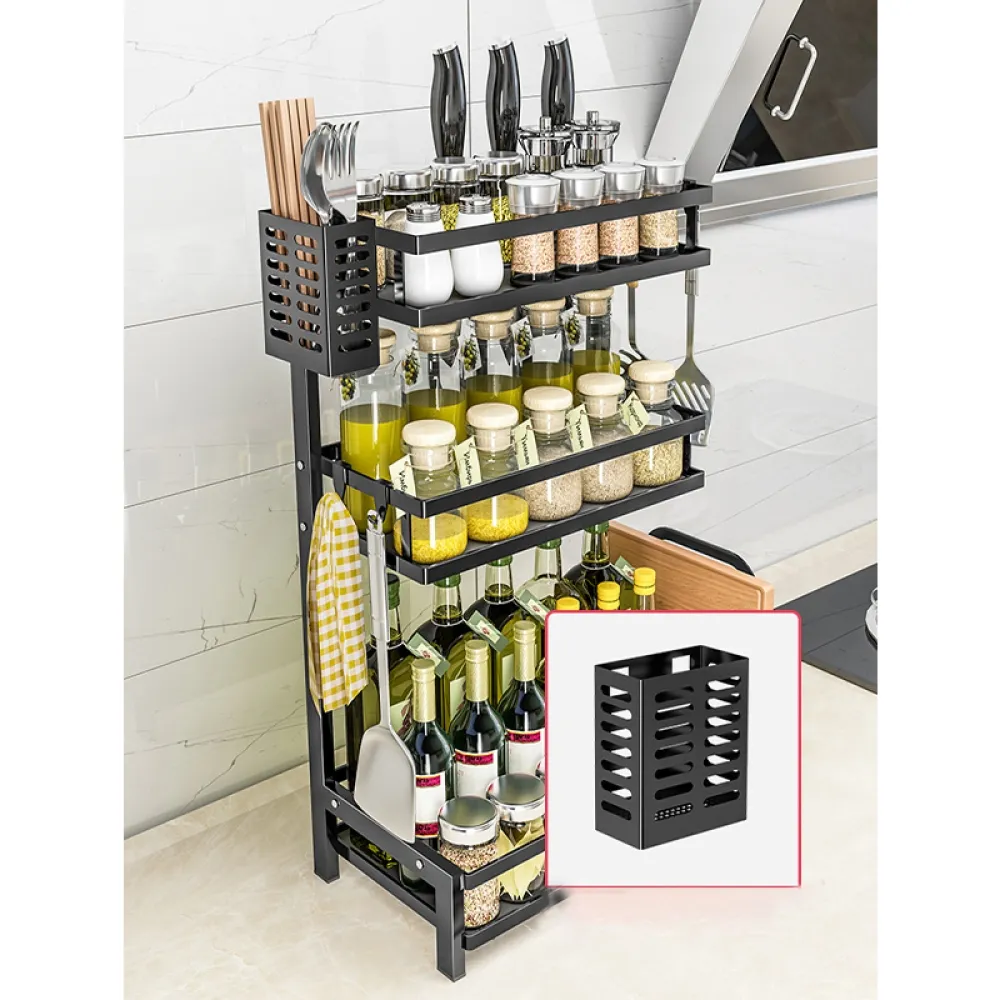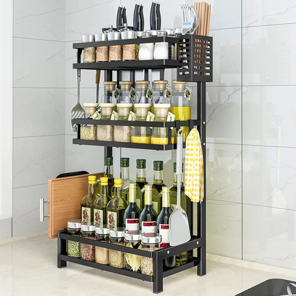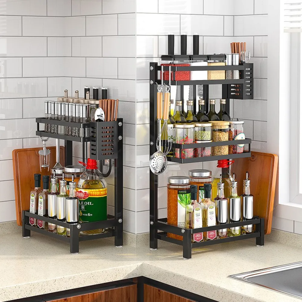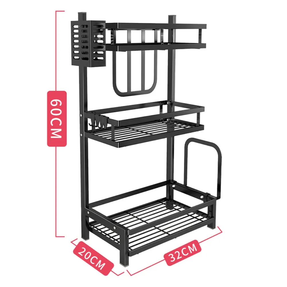 Priestranný trojposchodový kuchynský stojan z uhlíkovej ocele ponúka efektívne riešenie na organizáciu koreničiek, nožov aj ďalších kuchynských doplnkov. Vďaka trom úrovniam poskytuje dostatok miesta a pomáha maximálne využiť priestor na pracovnej ploche. Pevná konštrukcia z uhlíkovej ocele zabezpečuje stabilitu a dlhú životnosť aj pri každodennom používaní. Elegantný čierny dizajn dodá kuchyni moderný a prehľadný vzhľad.