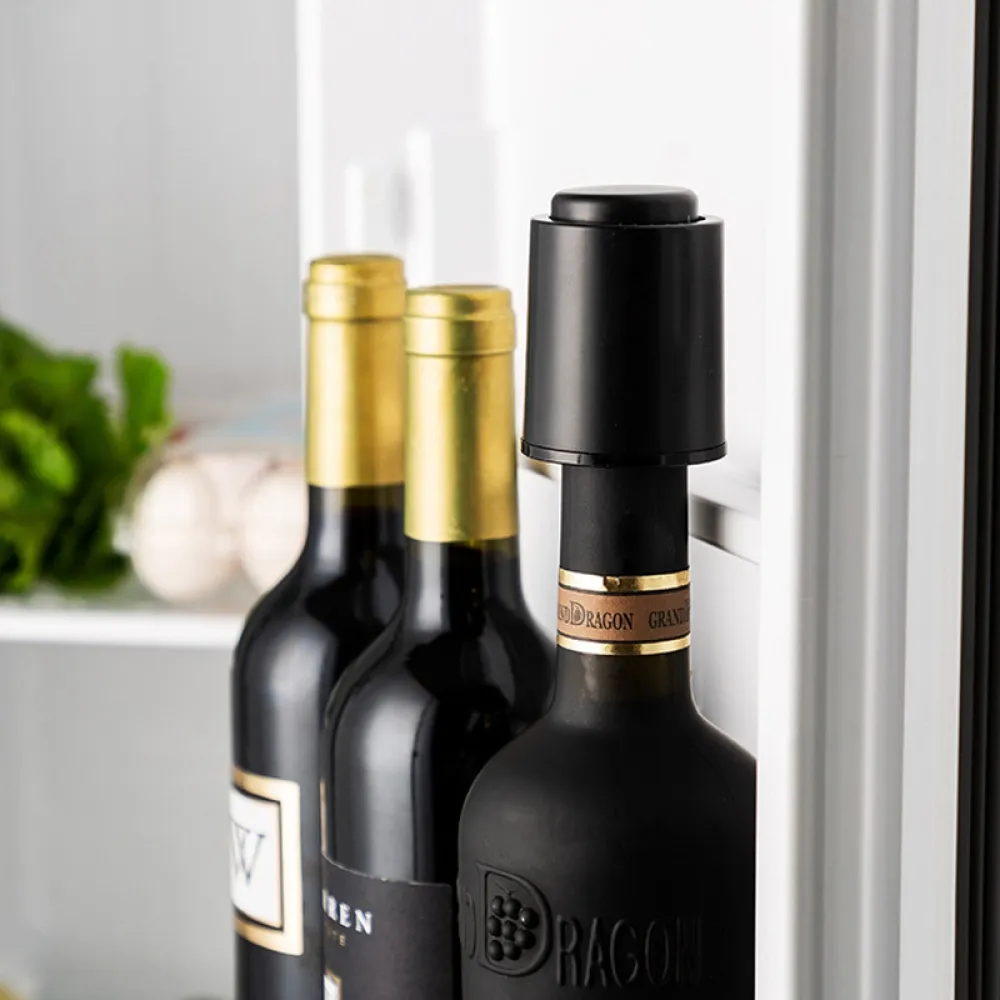 Praktický uzáver na víno, prosecco aj šampanské pomáha uchovať nápoj dlhšie čerstvý po otvorení. Vďaka tesniacemu prevedeniu minimalizuje únik vzduchu a zachováva chuť aj arómu. Integrovaná časová stupnica umožňuje jednoducho označiť deň otvorenia fľaše. Elegantný čierny dizajn je nenápadný a hodí sa do každej domácnosti aj vinotéky.