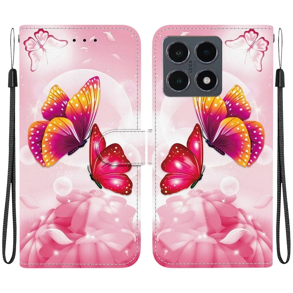 ✅【Vysoko kvalitné materiály】 Puzdro Versatile s motívom ružové motýle na mobil Xiaomi 15T je vyrobené z umelej kože v kombinácii s TPU so žiarivým vzorom
