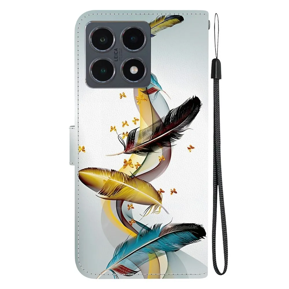 ✅【Vysoko kvalitné materiály】 Puzdro Versatile s motívom zlatá a modrá pierka na mobil Xiaomi 15T je vyrobené z umelej kože v kombinácii s TPU so žiarivým vzorom