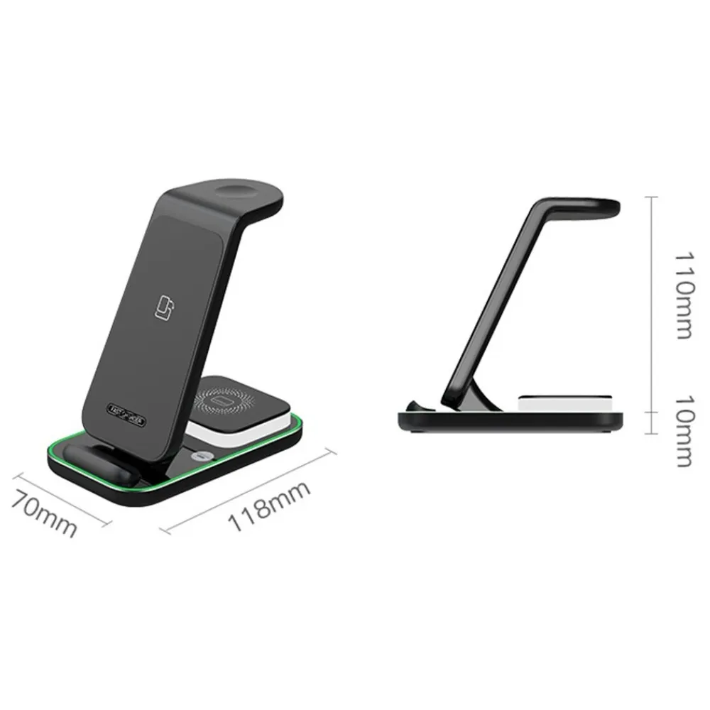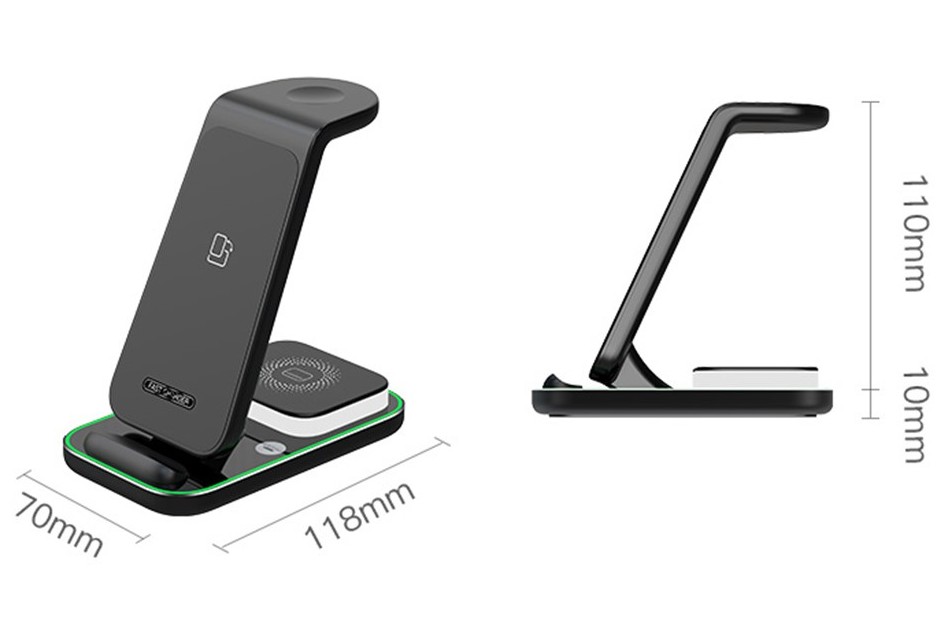 Model: YF-A6 Materiál: ABS Vstup: 5V/3A, 9V/2A, 12V/1.5A Bezdrôtový výstup: 5 W / 7,5 W / 10 W / 15 W Výstup pre slúchadlá: max. 5 W Výstup pre Apple Watch: max. 3 W Rozhranie: USB-C Požiadavky na adaptér: ≥ 9V / 2A Rozmery: 118 × 70 × 110 mm